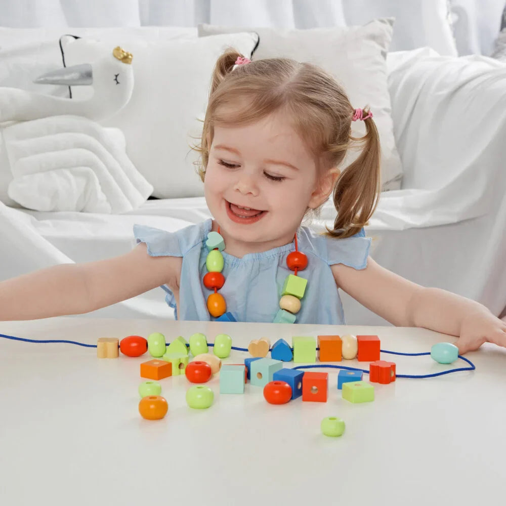 ¡Hagamos un hermoso collar o pulsera! Ensarte las cuentas de colores y se incluyen tarjetas de instrucciones. Los niños pueden practicar la coordinación ojo-mano y las habilidades motoras finas mientras se divierten.