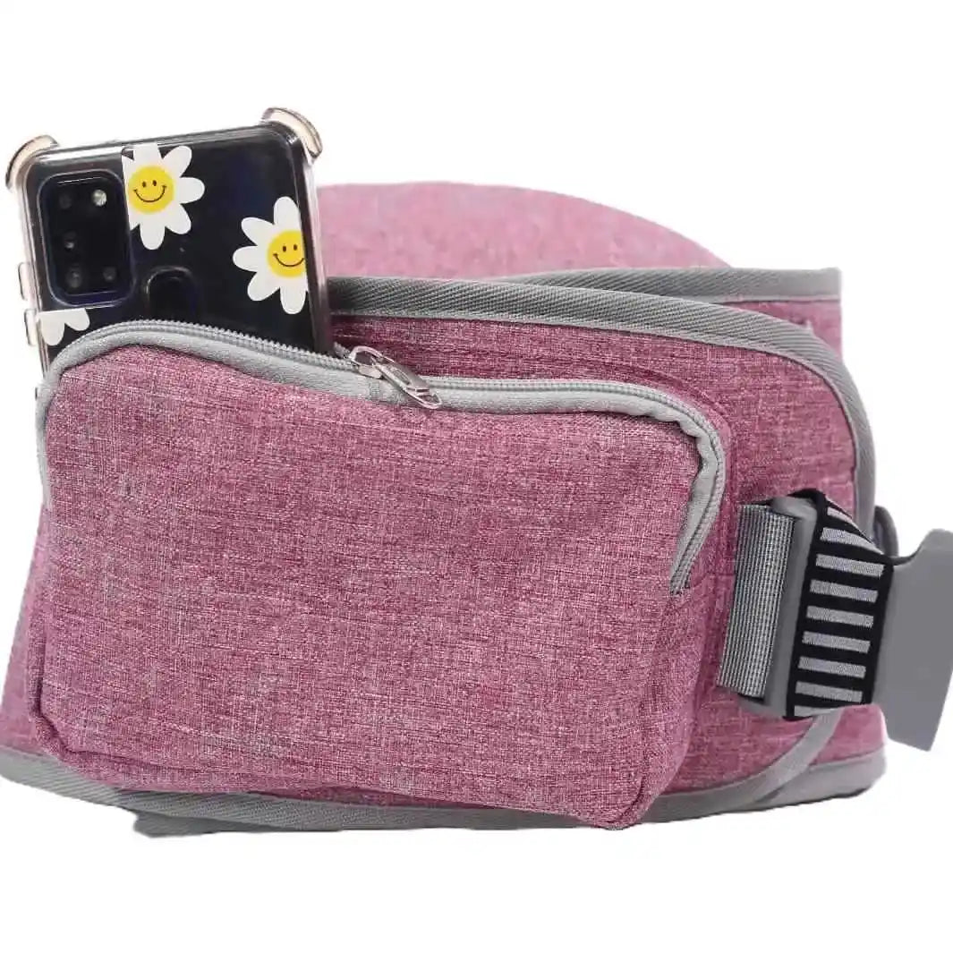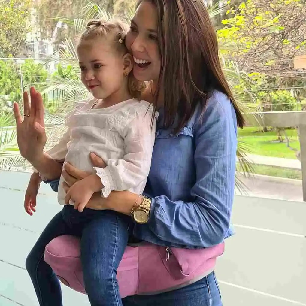 Banquito fijado a la cadera del adulto para sentar a bebé o niño(a) pequeño(a) en él, cargándolo como “en brazos”.