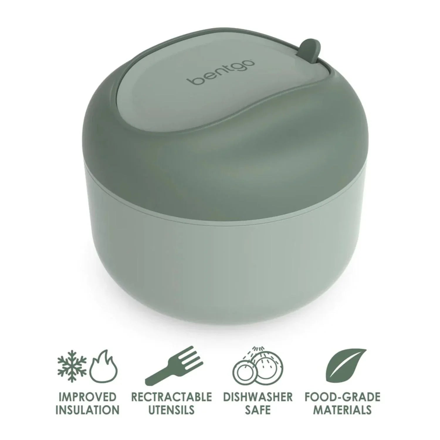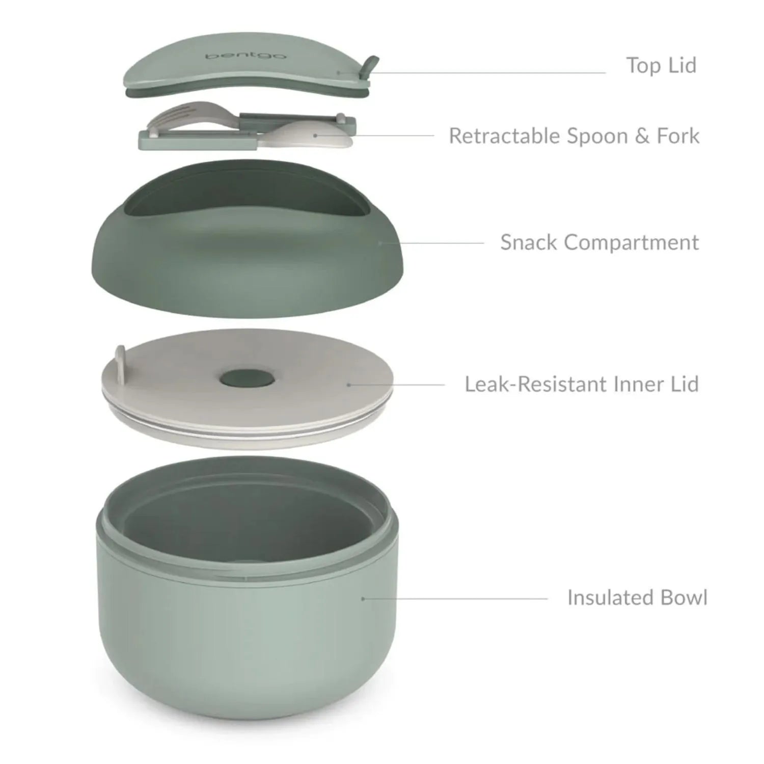 Bentgo® Bowl hace que comer alimentos calientes sobre la marcha sea más fácil que nunca. El diseño todo en uno ofrece un transporte sin problemas de sopa, fideos, arroz, estofado, chile, cereal y mucho más para que pueda disfrutar de una comida deliciosa y nutritiva en la escuela, el trabajo, en un avión, en el parque, o casi en cualquier lugar.