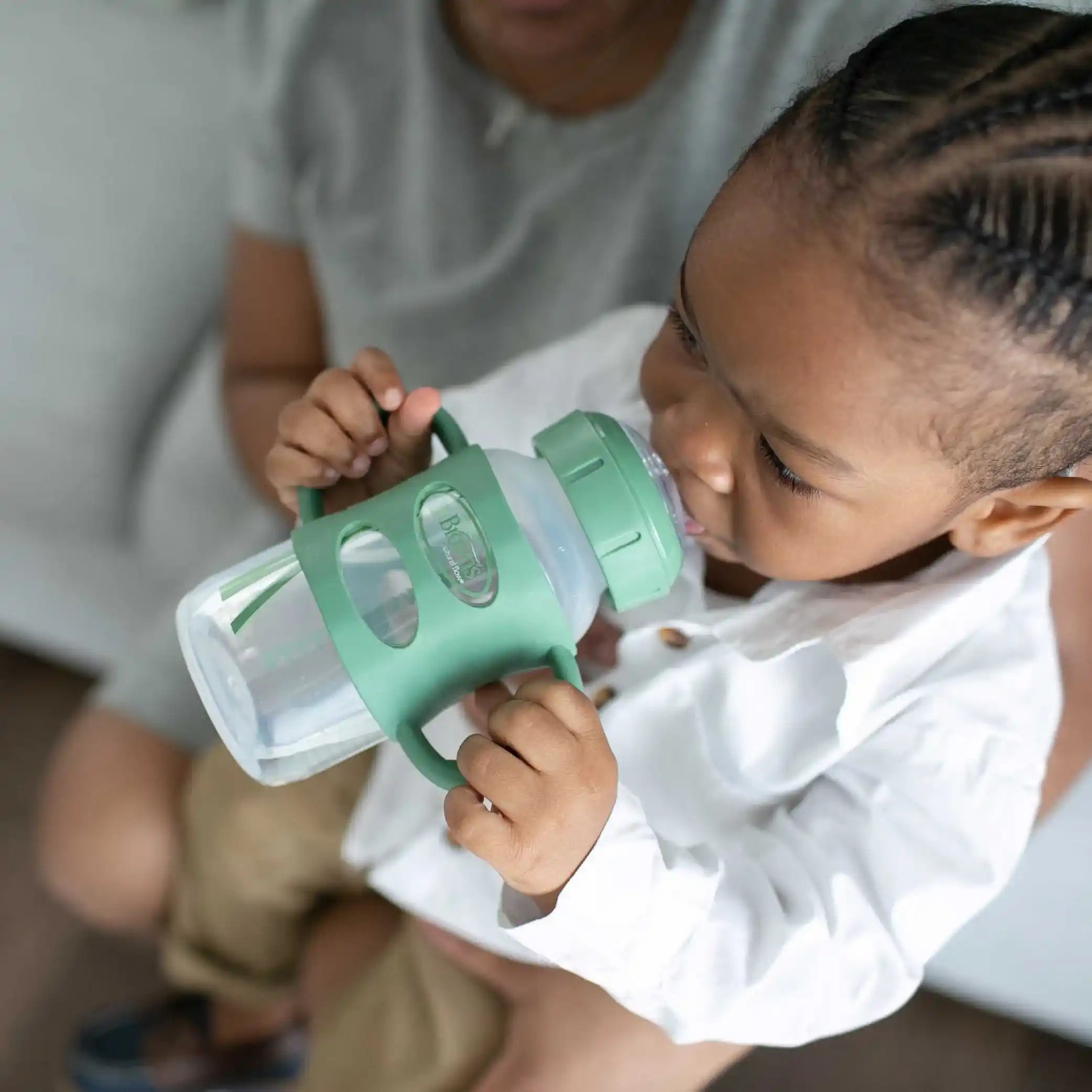 El biberón de transición con asas es el primer paso del biberón al vaso. Las asas de silicona 100% de fácil agarre son flexibles, extraíbles y fáciles de sostener. La tapa a presión ayuda a prevenir derrames y mantiene la boquilla limpia cuando estás en movimiento. Todas las piezas son aptas para lavavajillas (solo estante superior) y esterilizador. Sin BPA. Capacidad 9oz/270ml. Edad recomendada: 6 meses a más.