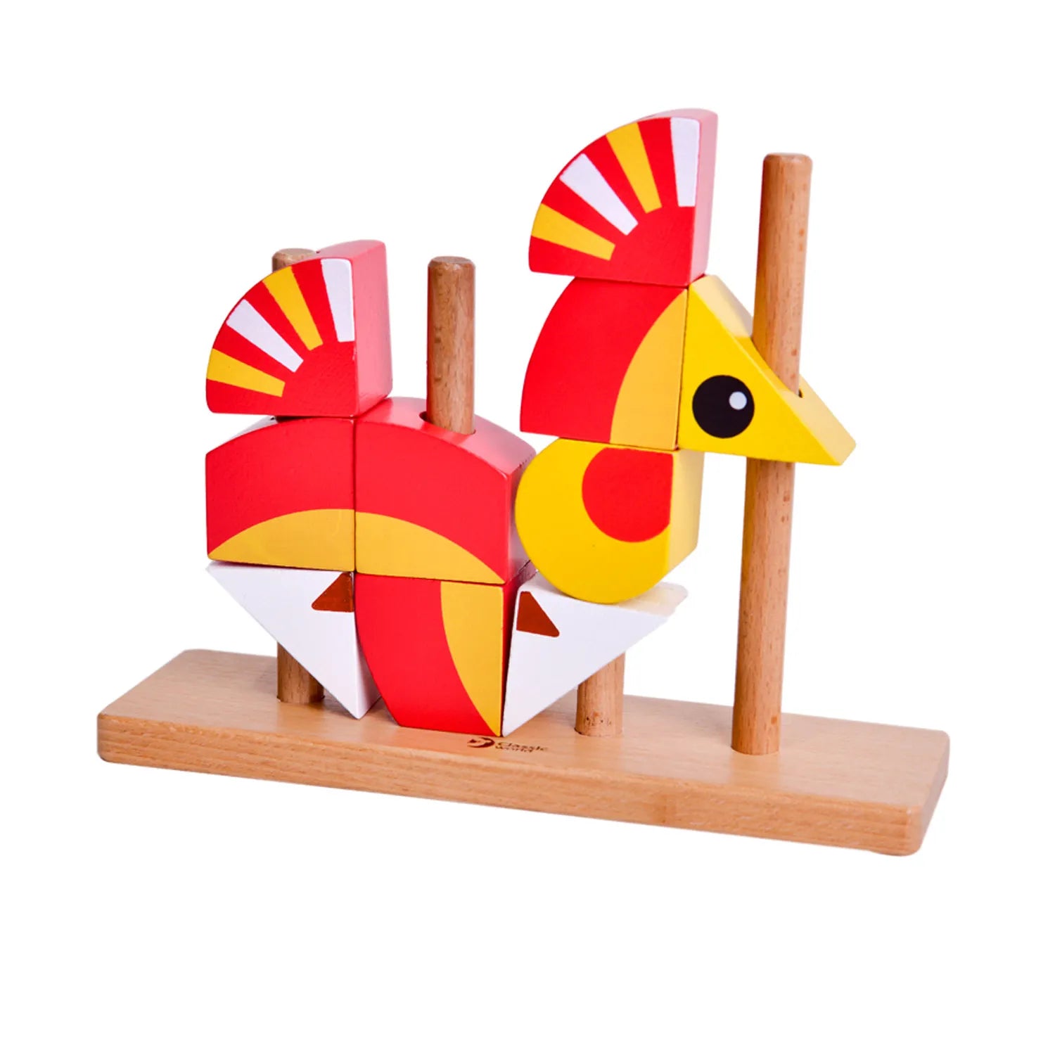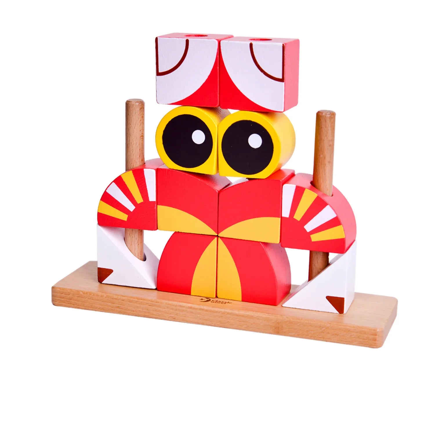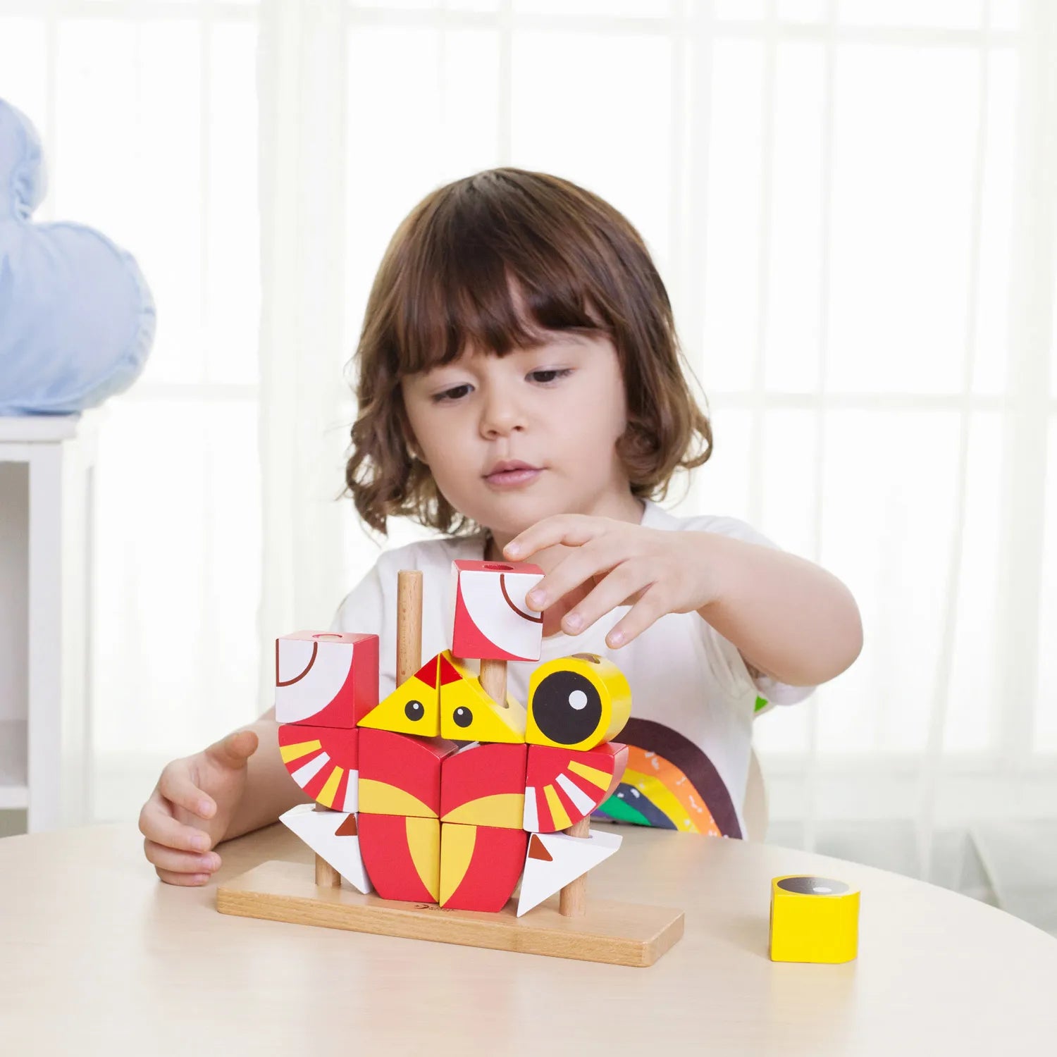 Este juguete de bloques con cara de león se puede ensamblar de diferentes maneras para crear varios diseños e imágenes. Contiene 12 piezas de bloques, una base de madera con 4 tacos que pueden separar y volver a conectar los bloques. Las 5 tarjetas de instrucciones proporcionan formas creativas de montar los bloques. Este juguete mejora la coordinación ojo-mano de los niños, fomenta su inteligencia e imaginación y mejora las habilidades de resolución de problemas.