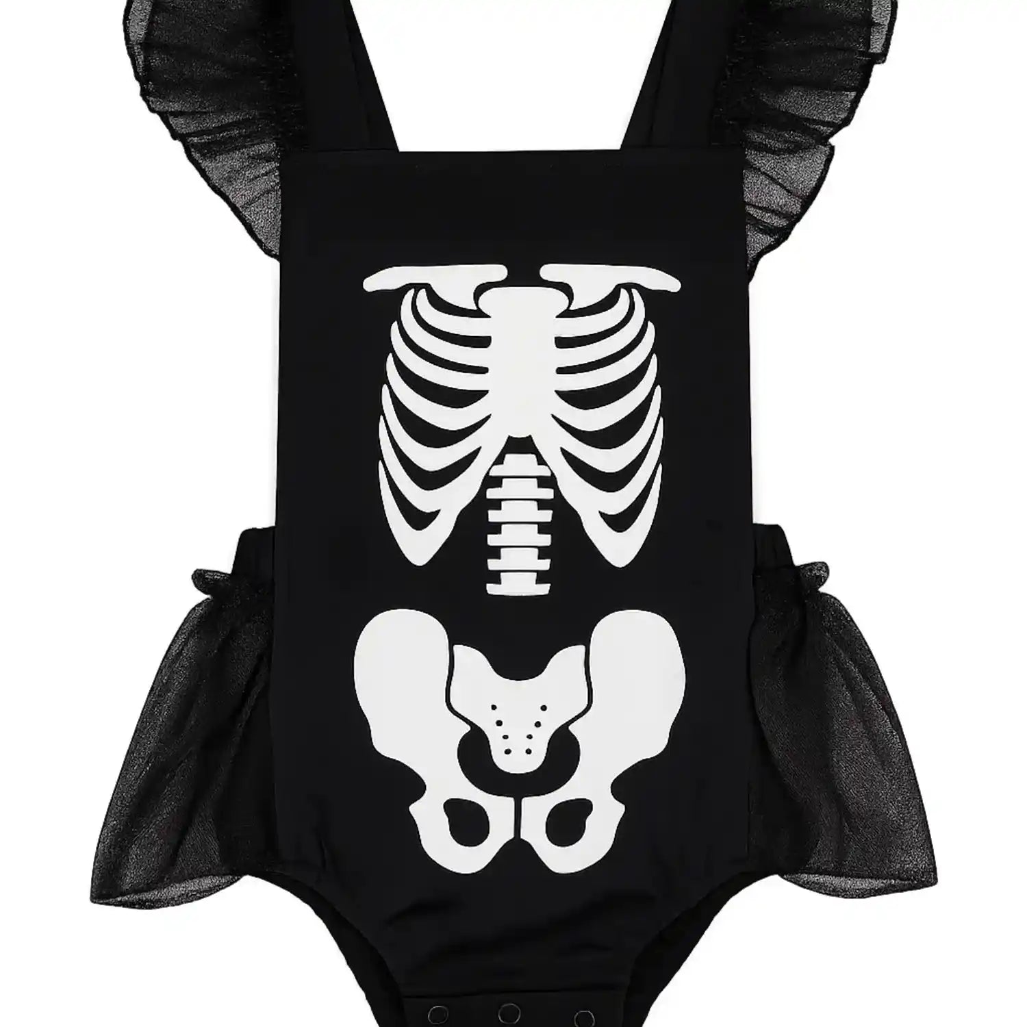 Este adorable outfit está diseñado para que tu bebé luzca única y con mucho estilo. El look combina el divertido diseño de calavera con delicados detalles femeninos, como las blondas en los bracitos, que aportan un toque dulce y elegante. Su tela suave y fresca garantiza comodidad en todo momento, ideal para celebraciones temáticas, sesiones de fotos o eventos especiales.