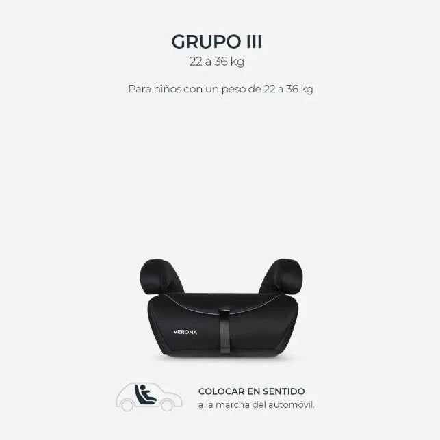 La silla de auto es universal para todo tipo de vehículos que posean cinturón de seguridad de tres puntos. Puede transformarse en booster de forma sencilla retirando su respaldo. Tiene un regulador de altura de respaldo para ajustarse al crecimiento del niño (se adapta hasta una altura de 71 cm, altura mínima 59 cm). Posee un cinturón de seguridad de 5 puntos con apertura y cierre de hebilla central, que sujeta hombros y cadera del niño de manera rápida y segura. Además, cada arnés es regulable y cuenta con almohadillas acolchadas para lograr un ajuste cómodo y adecuado para el niño. Recomendada de 9 a 36kg: Usar modo butaca de 9 a 25kg, de 15 a 25kg usar sin arnés, y modo asiento (sólo booster) para niños con un peso de 22 a 36kg. Colocar en sentido a la marcha del automóvil. MEDIDAS: ⟷ Asiento: 25 cm de ancho. ⟷Apoyacabezas: 29 cm de ancho.⟷ Respaldo: 43 cm de ancho.