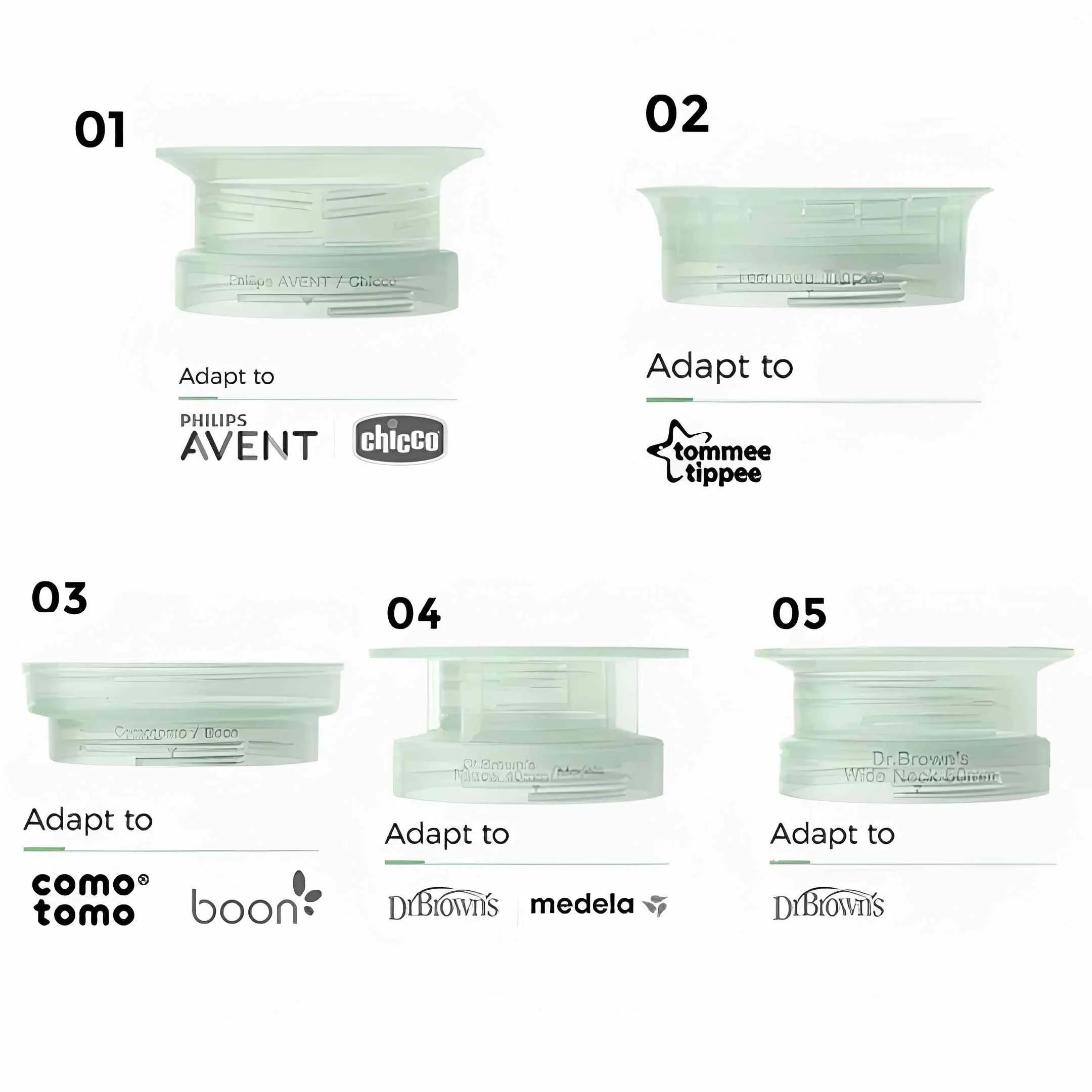 ✔ Compatible con diferentes biberones: Incluye 5 adaptadores universales.
