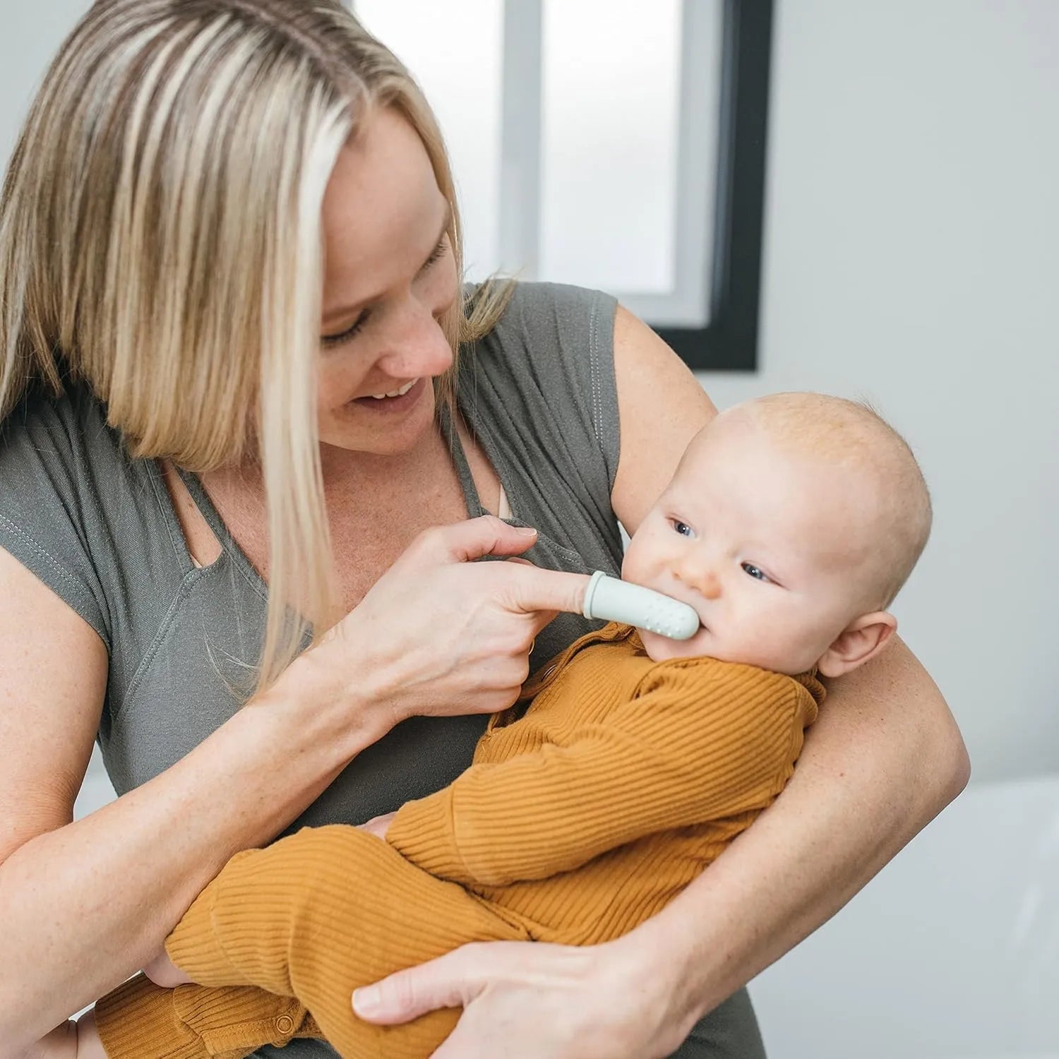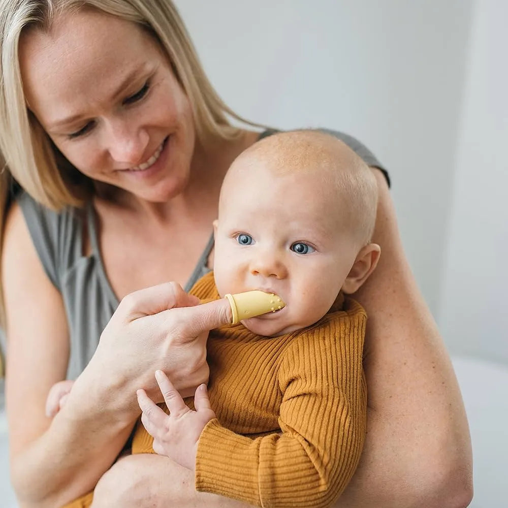 Las cerdas de silicona suaves, pero resistentes limpian con cuidado las encías y los dientes que están saliendo del bebé.