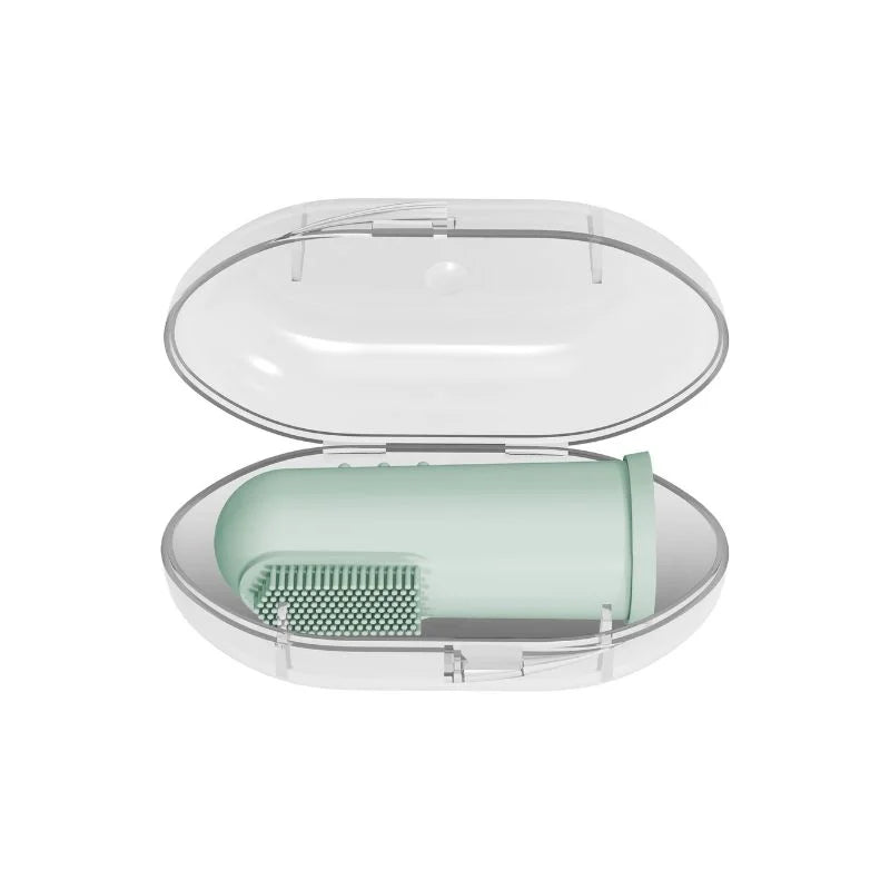 La caja de almacenamiento incluida protege el cepillo de dedo cuando el pequeño no lo use.
