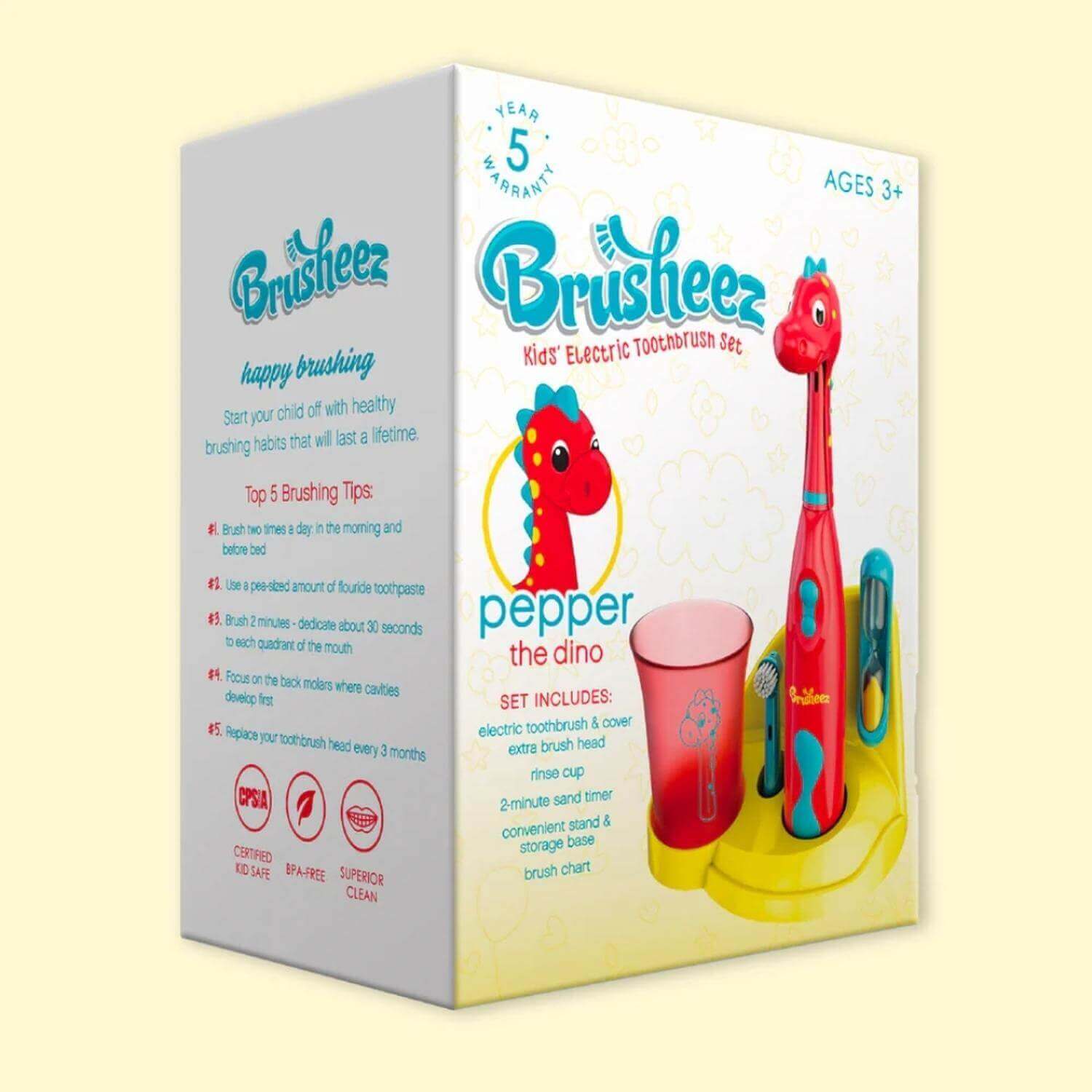 El nuevo cepillo de dientes favorito de tu hijo, que está diseñado desde 3 años o más para promover una higiene bucal saludable. Las cerdas suaves de alta calidad proporcionan una suave vibración que elimina el doble de placa que un cepillo de dientes manual. No contiene BPA y está certificado como seguro para niños. Contiene: cepillo de dientes para niños a batería, cubierta de cepillo con temática animal, cabezal de cepillo de repuesto que debe ser cambiado cada 3 meses, vaso de enjuague y un temporizador de arena de 2 minutos.