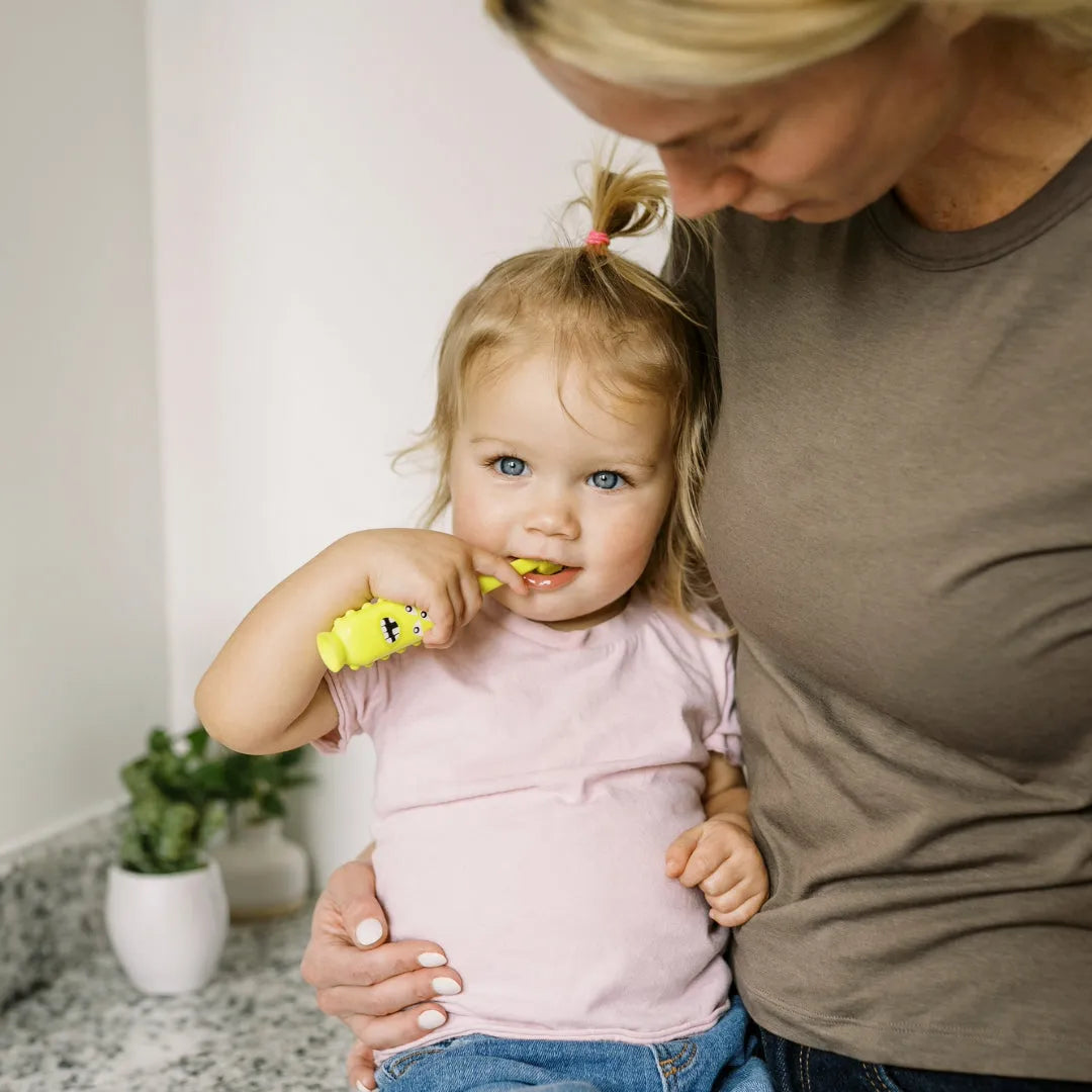 • Cepillo de entrenamiento: Tamaño justo para bocas y dedos pequeños que ayuda al pequeño a desarrollar las habilidades que necesita para alcanzar el cepillado independiente.