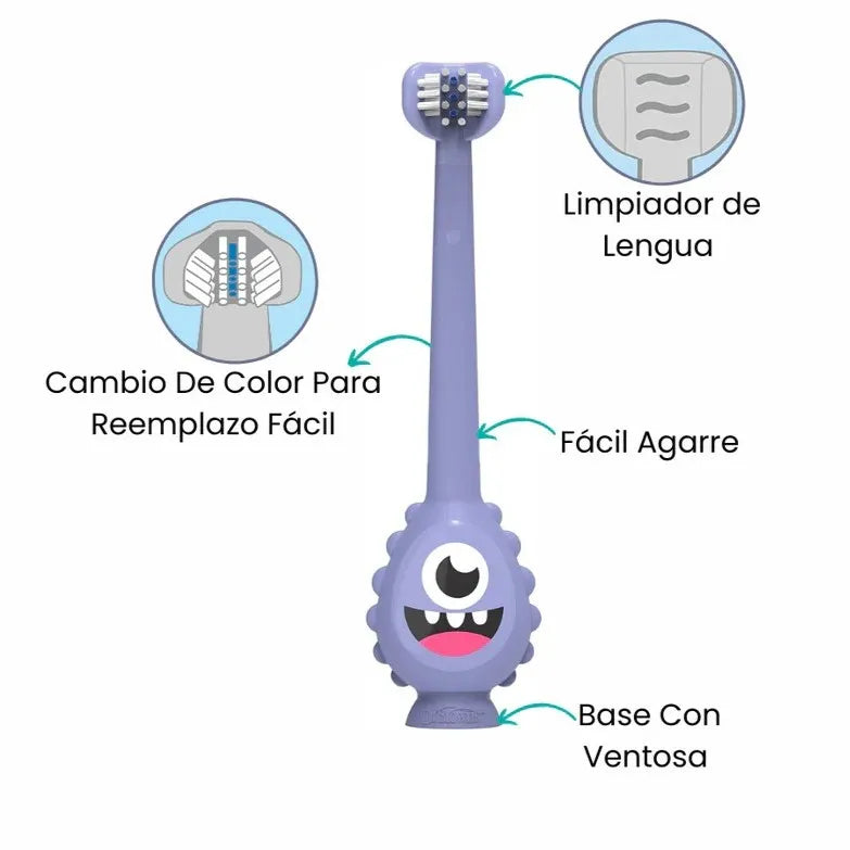 Las cerdas súper suaves limpian delicadamente los dientes y las encías de tu niño pequeño, proporcionando una experiencia de cepillado agradable y efectiva. Estas cerdas están diseñadas para ser gentiles con la boca sensible de los más pequeños, asegurando una limpieza completa sin causar molestias. Con este cepillo, puedes mantener la higiene bucal de tu hijo de manera segura y cómoda.