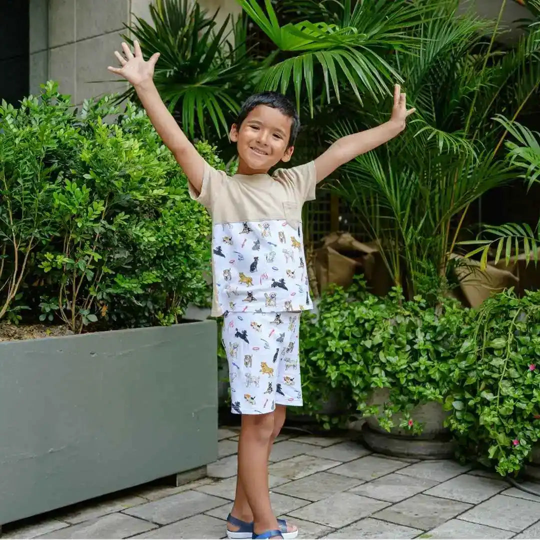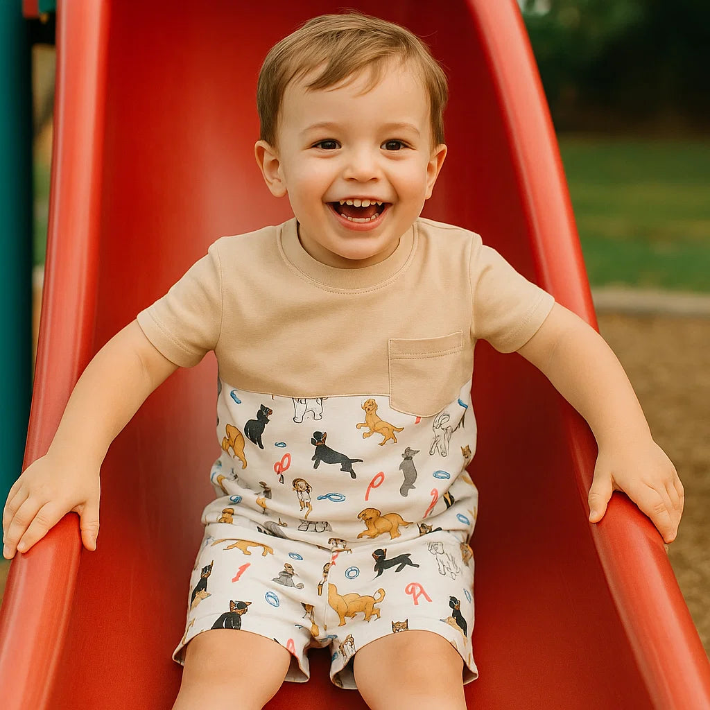 Nuestro conjunto polo + short de 100% algodón pima es suave, transpirable y resistente. El estampado de mascotas es una forma divertida de agregar un toque de personalidad a su outfit. ¡Perfecto para niños que aman a los animales!
