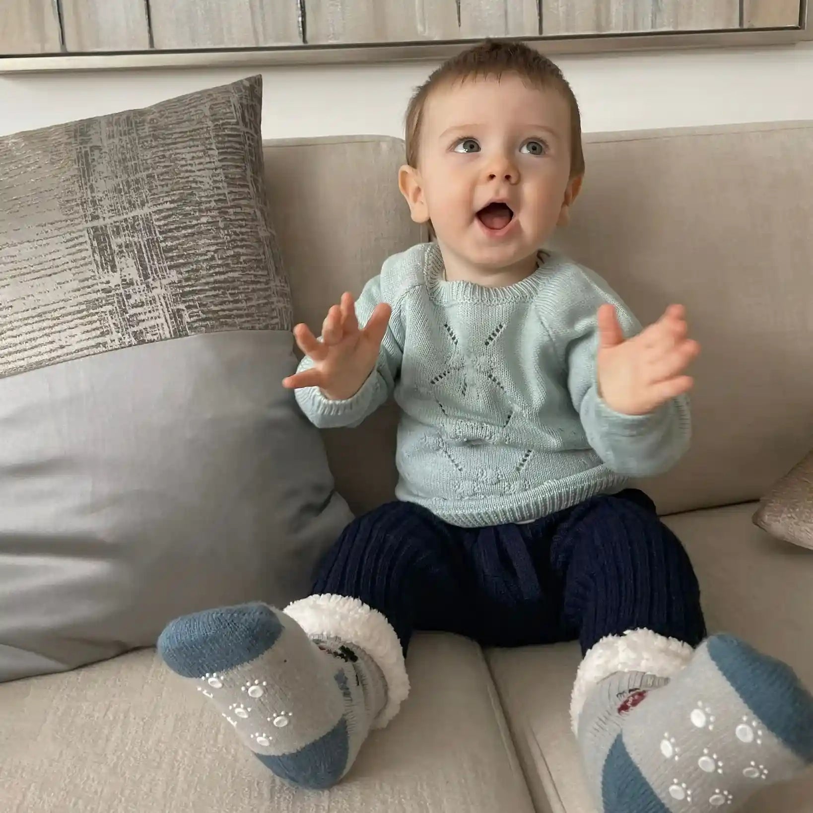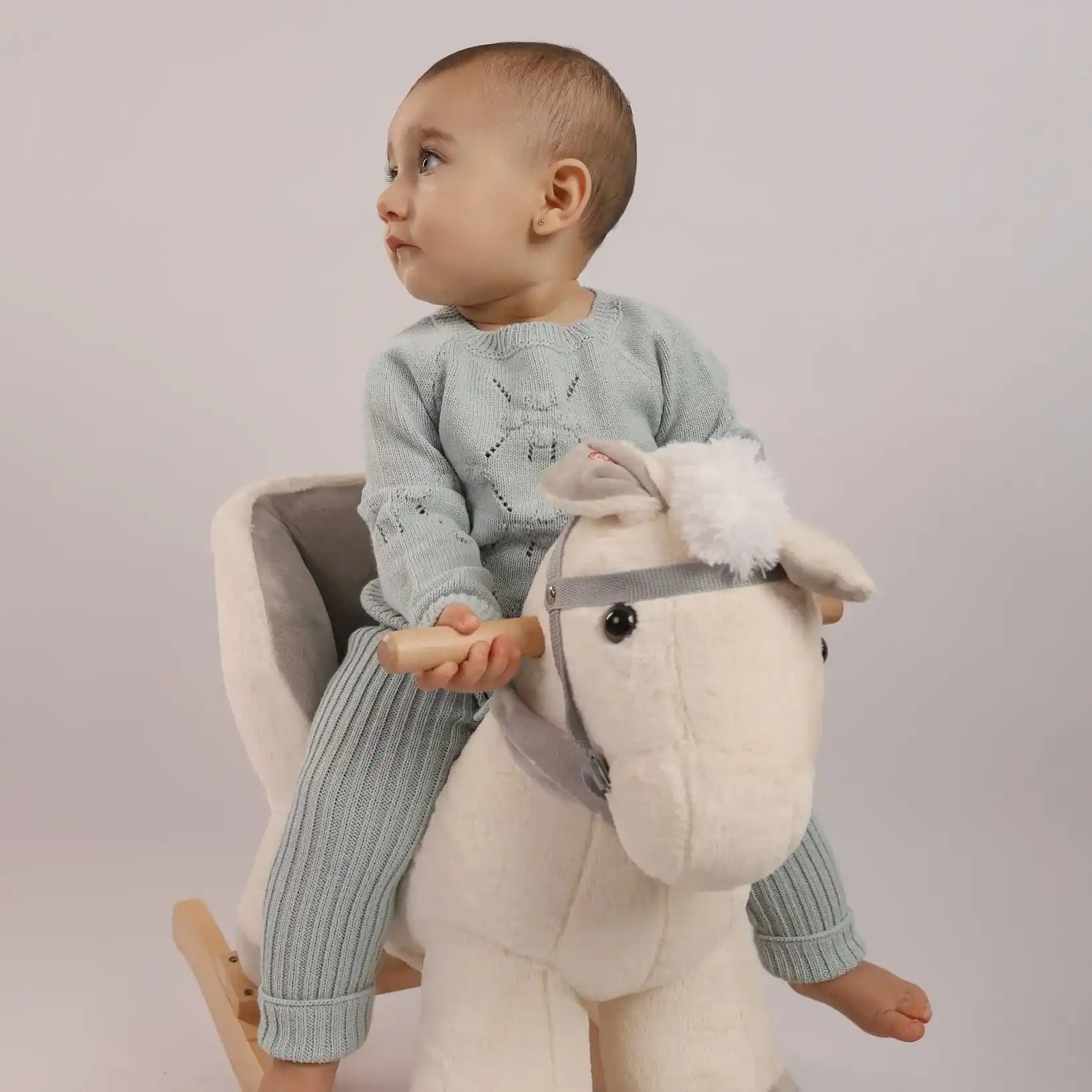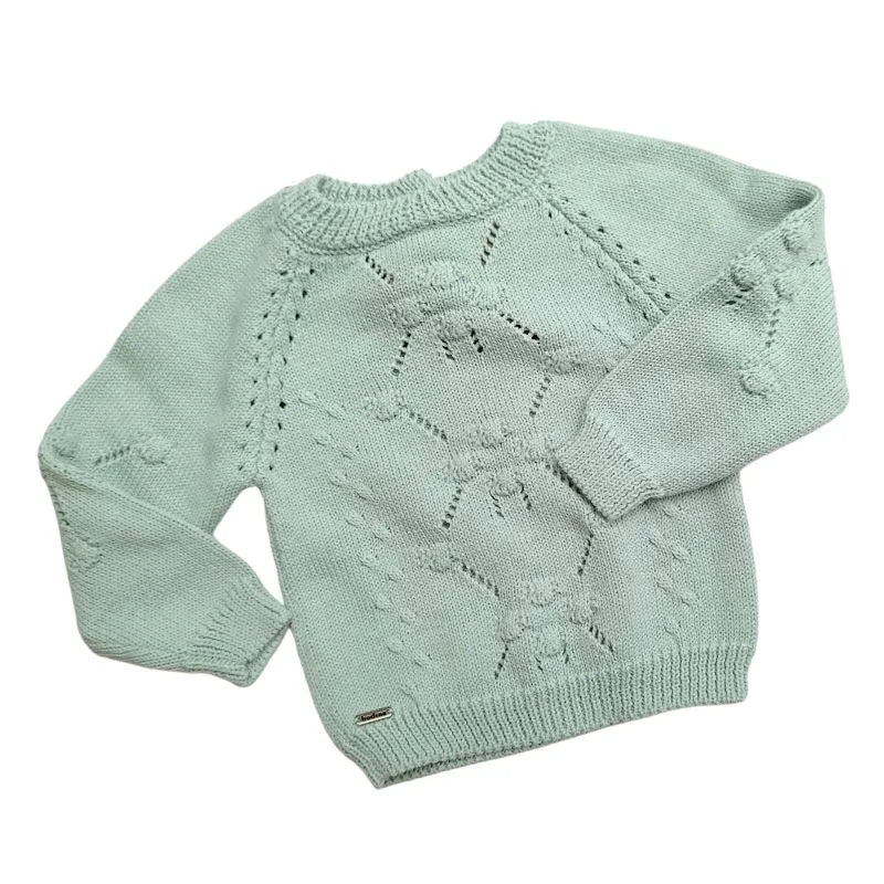 Este delicado conjunto tejido de dos piezas para bebé está confeccionado con hilo suave y respirable, ideal para mantenerlo cómodo y abrigado. El suéter de manga larga y el pantalón presentan un elegante diseño calado con motivos florales en relieve que aportan un toque artesanal y encantador. Perfecto para ocasiones especiales o para lucir con estilo todos los días.