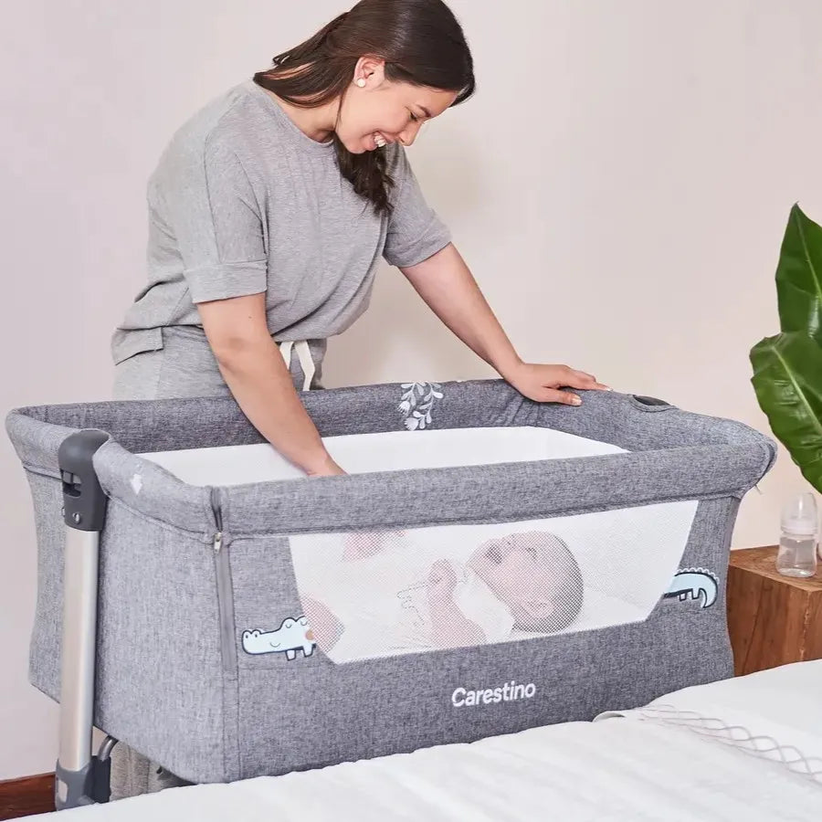 La cuna colecho MADISON está diseñada para mantener a tu bebé siempre cerca durante el descanso. Esta cercanía no solo refuerza el vínculo afectivo entre vos y tu bebé, sino que también facilita los cuidados nocturnos, minimizando los desvelos. La función cuna-colecho permite que el lateral de la cuna se abra fácilmente, manteniendo a tu bebé cerca tuyo mientras duerme. Este diseño innovador incluye una correa de sujeción extensible, que garantiza una instalación segura y estable de la cuna junto a la cama, brindándote la tranquilidad de tener siempre cerca a tu bebé. Los pies de la cuna colecho MADISON cuentan con un sistema mecedor rebatible que se activa con facilidad, proporcionando un suave movimiento que favorece la relajación y el sueño de tu bebé.