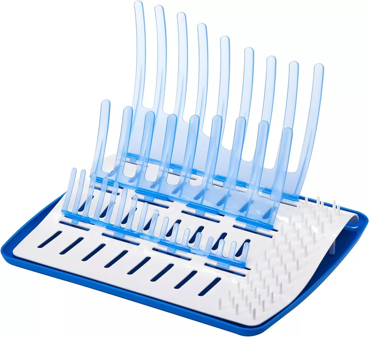 Ahorre tiempo y espacio con el escurridor práctico y plegable de biberones y accesorios Dr. Brown’s. La plataforma de secado elevada con bandeja de recolección de agua mantiene secos y limpios hasta 12 biberones estándar o biberones de cuello ancho, adaptable a otras marcas. El diseño universal se adapta a tazas, biberones, chupones, mordederas, y mucho más. Cuenta con unas dimensiones de 34.3 × 28.7 × 5.6 cm. Apto para lavavajillas. Sin BPA.