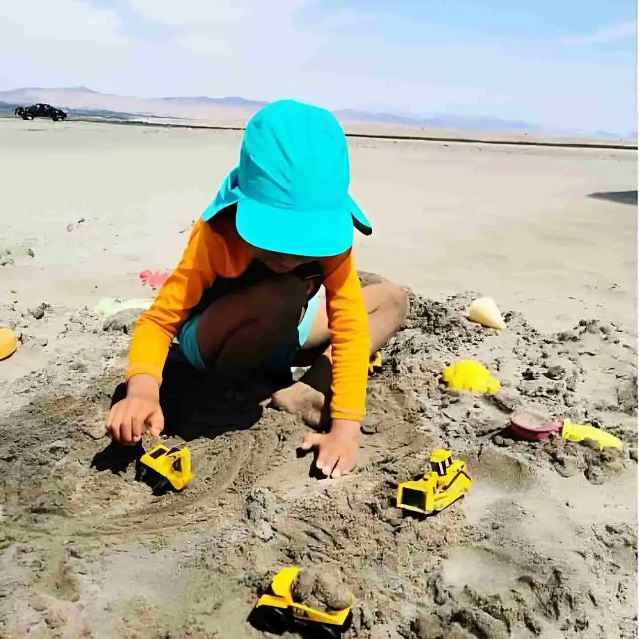 Mantén a tu pequeño protegido del sol con este gorro de ala larga, diseñado especialmente para cubrir rostro, orejas y nuca. Gracias a su visera frontal y tela extensible en la parte trasera, es ideal para proteger en paseos, días de piscina o playa.