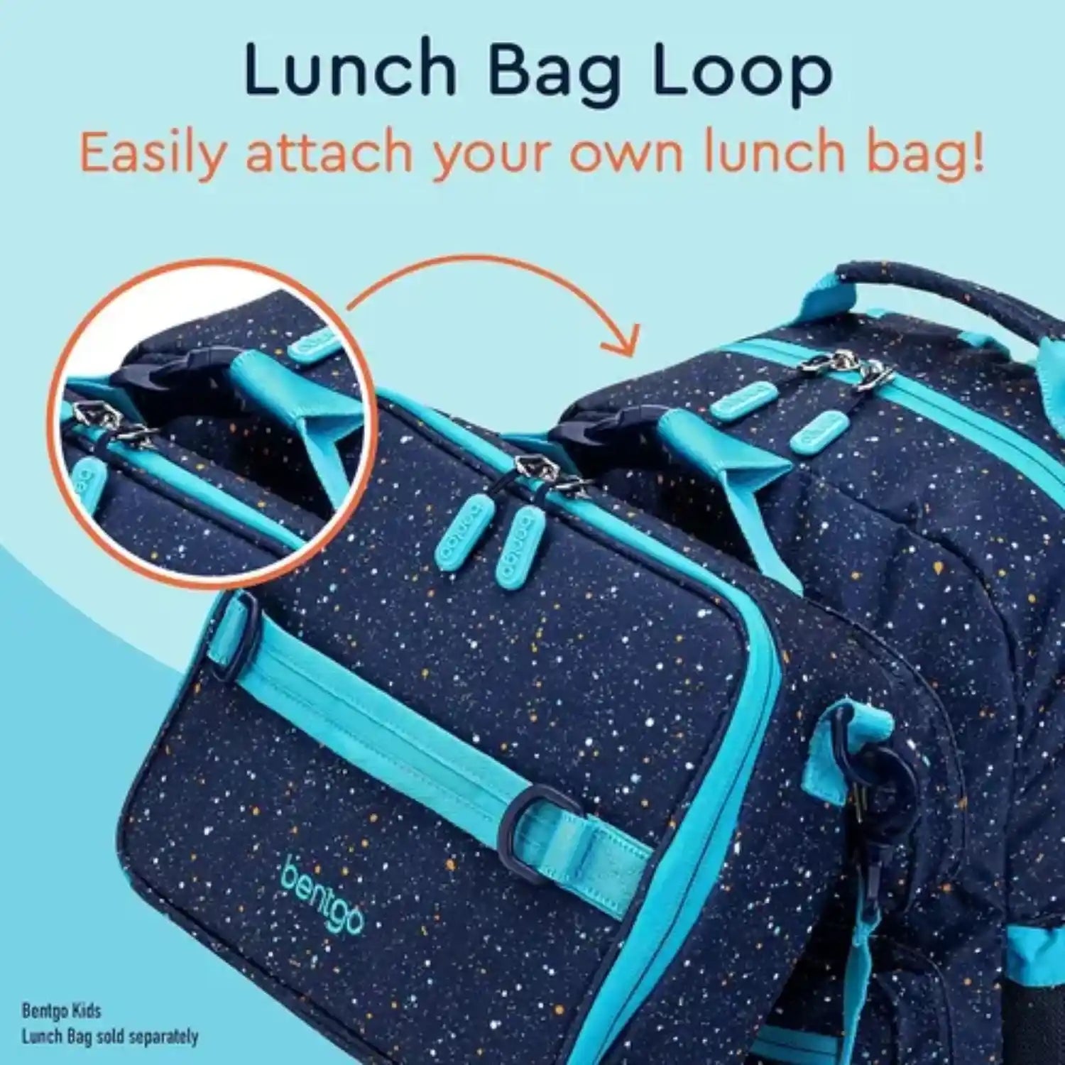 Las correas acolchadas, los tiradores de cremallera extralargos y el asa para llevar hacen que llevar, sostener y abrir la mochila sea lo suficientemente fácil para un niño y lo suficientemente conveniente para un padre. Además, el lazo adicional para colocar fácilmente tu Porta Lonchera Bentgo Kids Prints cuando sea necesario. ¡Encuentra el estampado favorito de tu hijo de la familia Bentgo!