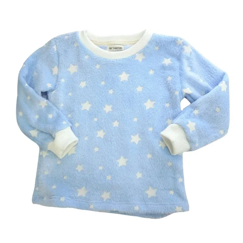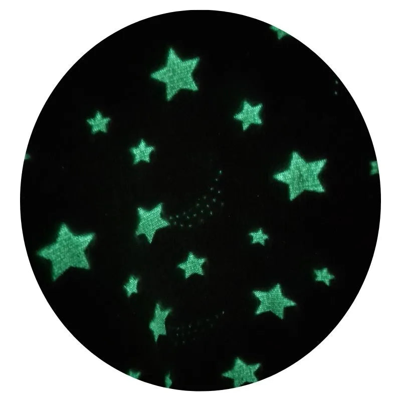 Estas pijamas afelpadas de algodón brillan en la oscuridad con estrellas que parecen estar en el cielo.