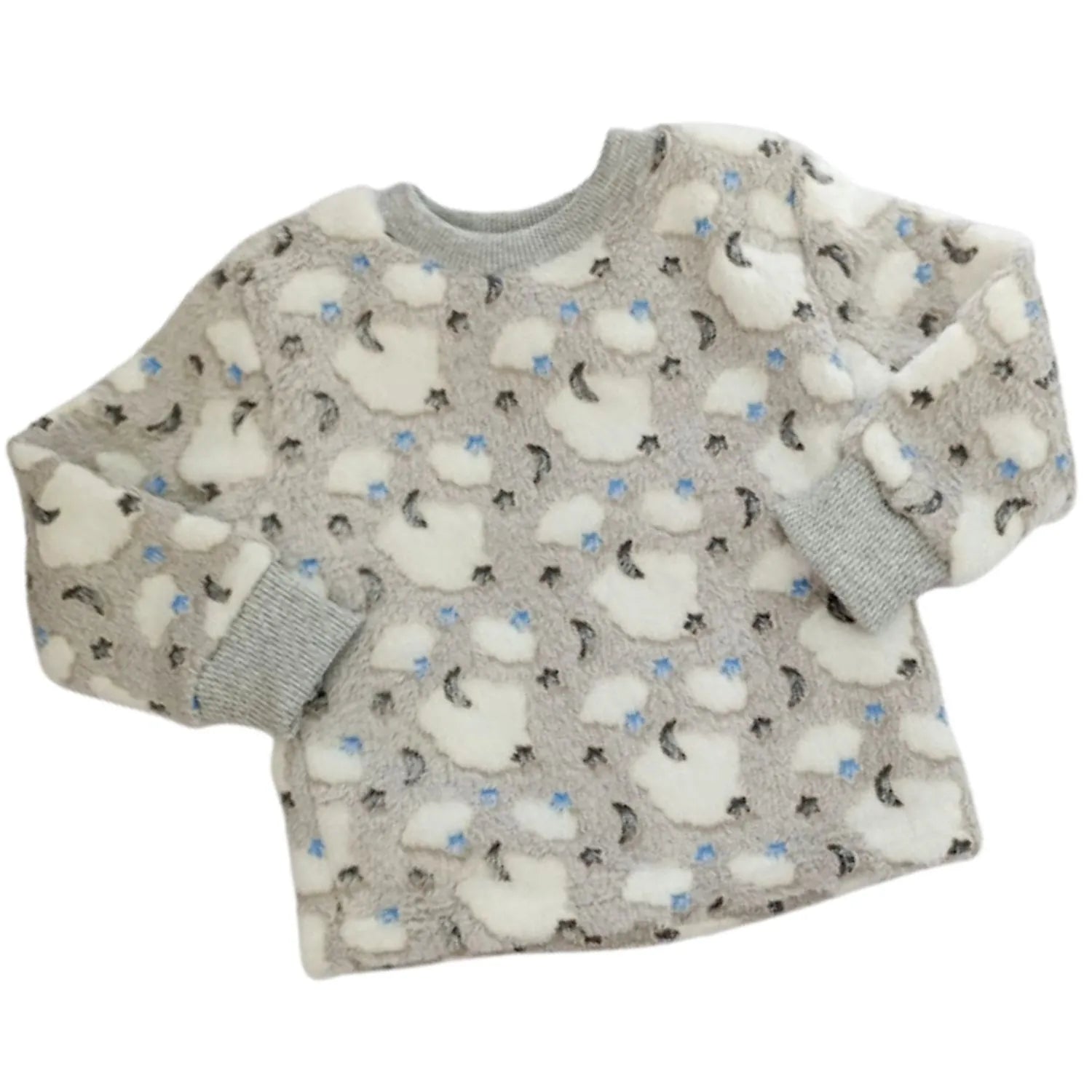 Pijamita de felpa hipoalergénica para bebés, con estampado de ovejitas adorables.