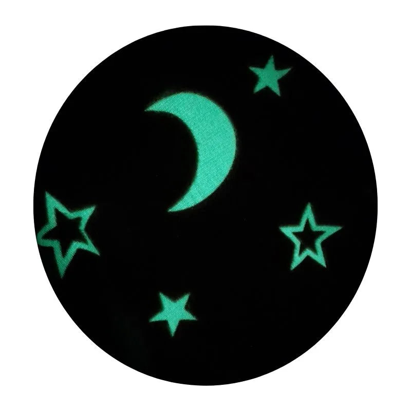 Estas pijamas afelpadas de algodón brillan en la oscuridad con estrellas que parecen estar en el cielo.