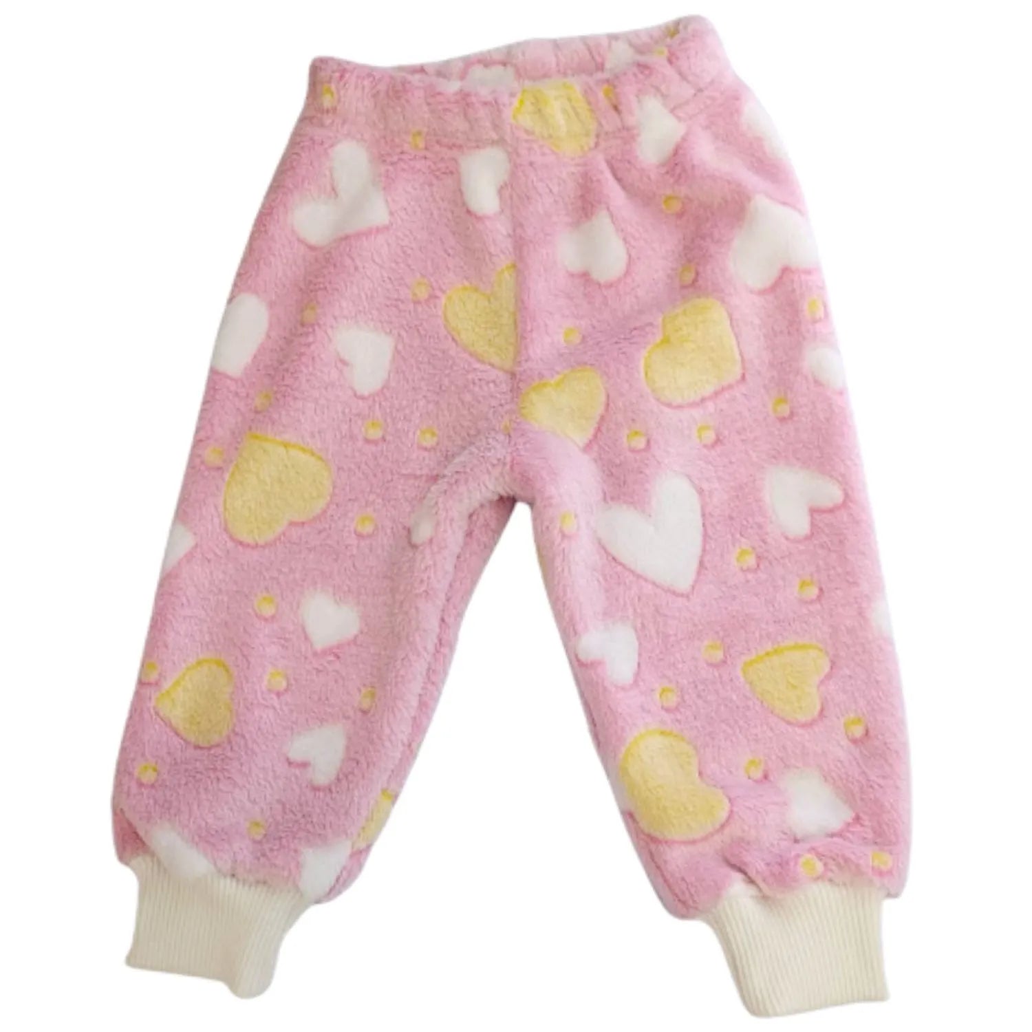 Pijamita de felpa hipoalergénica para bebés niñas, con estampado de corazones adorables. Ideal para noches frías y suaves para la piel sensible de tu pequeña. Broche en el hombro izquierdo para fácil puesta.