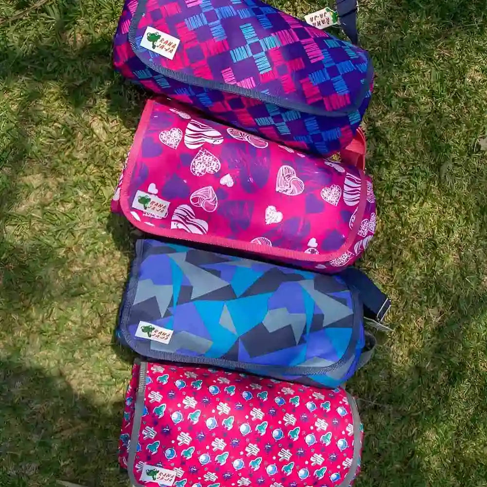 🔸se dobla quedando como un bolso con una asa regulable.
