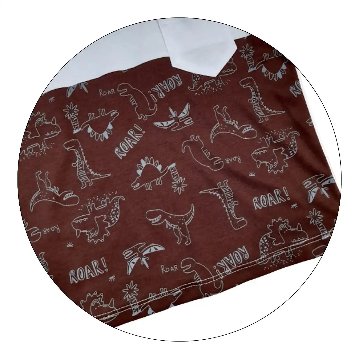 Cuenta con un bolsillo en el pecho y un encantador estampado de dinosaurios en la parte frontal, lleno de color y personalidad. Su diseño es fresco, ligero y perfecto para acompañar todas las aventuras de tu niño: juegos, paseos o actividades del colegio.