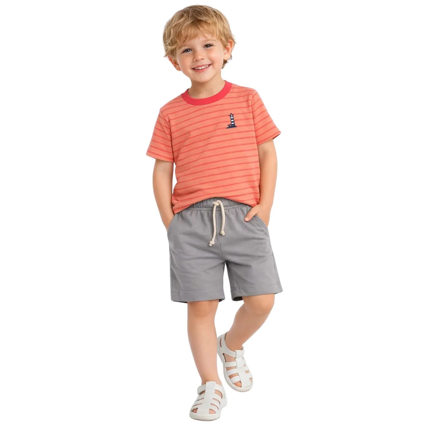 Nuestro polo manga corta de algodón pima , suave y fresco, ideal para el uso diario. Su diseño a rayas finas naranjas con cuello contrastado y delicado bordado de faro le da un toque clásico y encantador. Confeccionado en algodón pima de alta calidad, garantiza comodidad, durabilidad y suavidad para la piel de los más pequeños.