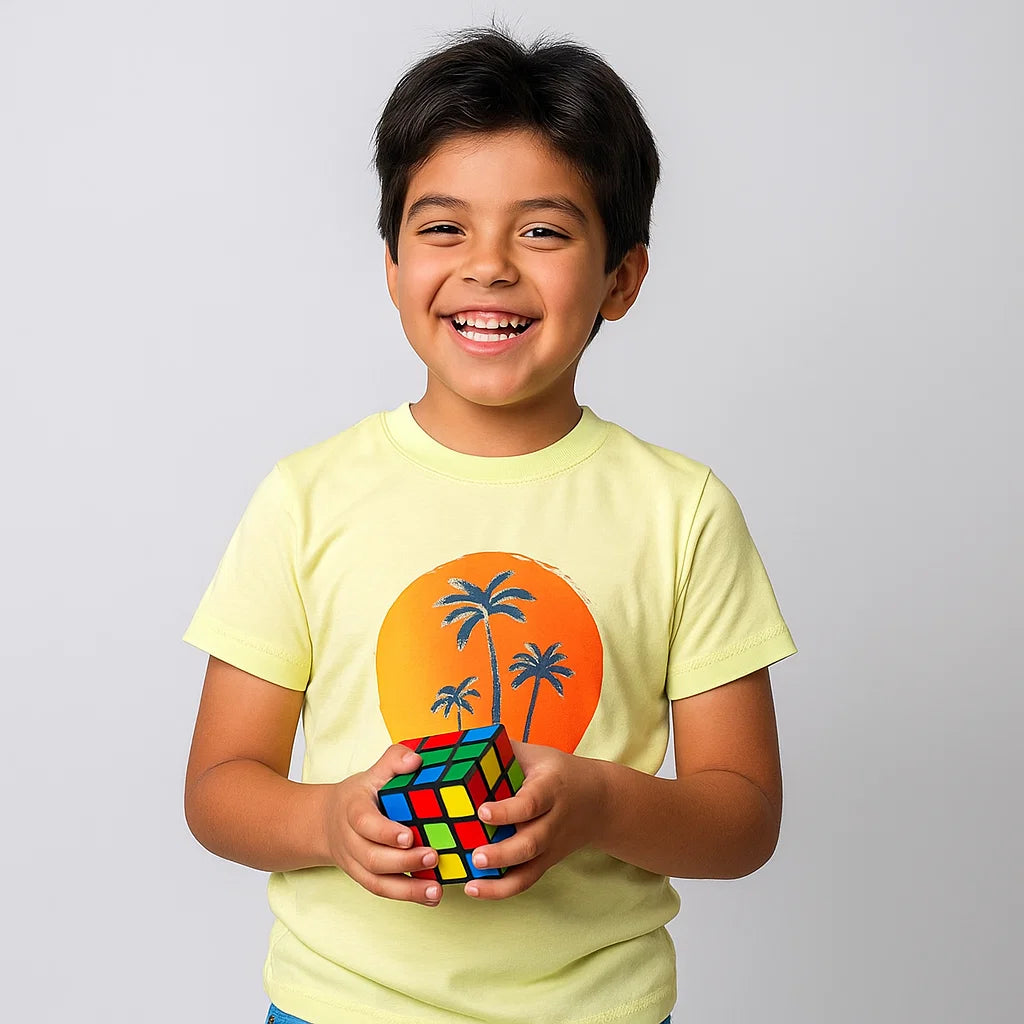 Un polo moderno y lleno de vibra tropical… ¡perfecto para pequeños exploradores que aman el verano y la naturaleza!