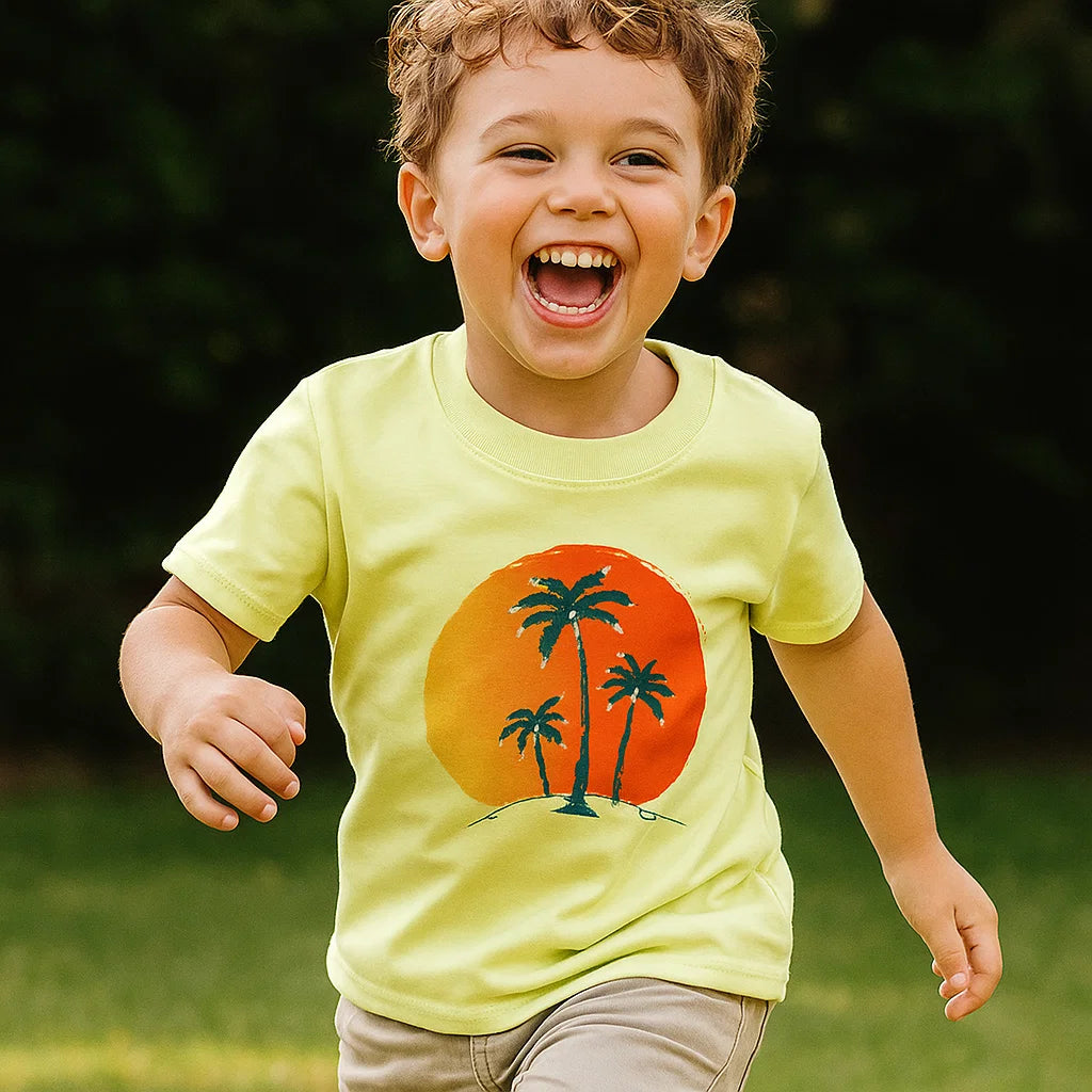 Su diseño en color verde incluye un estampado de isla en la parte frontal, lleno de detalles veraniegos que evocan playa, sol y aventura. Es una prenda fresca, cómoda y fácil de combinar, ideal para jugar, pasear o disfrutar actividades al aire libre.