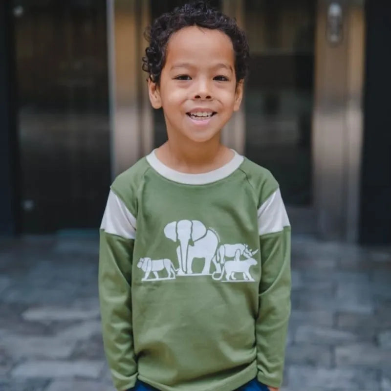 Polo manga larga 'África' para niños aventureros. Hecho de algodón Pima súper fresco, perfecto para la media estación o como capa interior. Un básico en el closet que no puede faltar. Y lo mejor, un estampado con 4 amigos de la sabana africana: rinoceronte, elefante, león y leopardo, que harán que tu pequeño se sienta un verdadero explorador. ¡Viste con comodidad y estilo, y deja que la aventura comience!