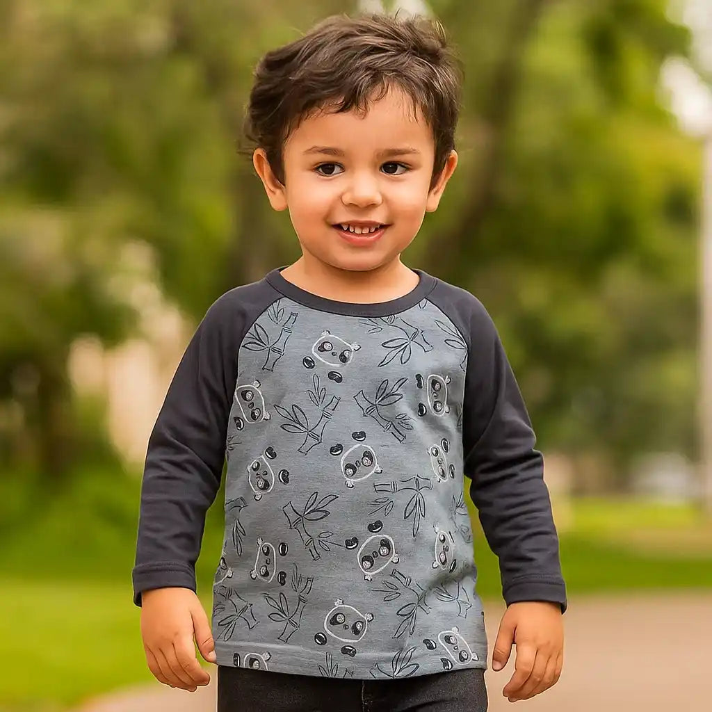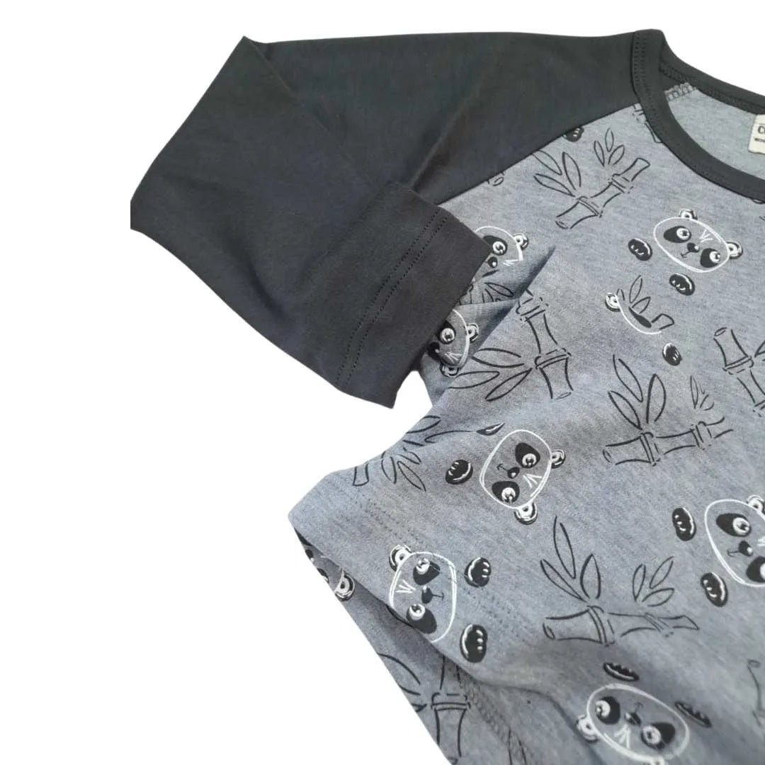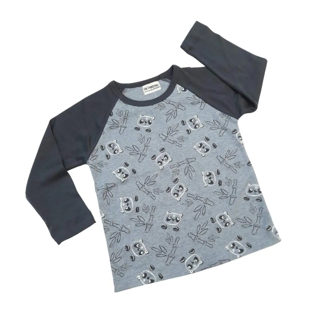 Nuestro polo manga larga gris Agustín es cómodo y transpirable. Con un estampado adorable de pandas en algodón pima, es perfecto para agregar un toque de personalidad y estilo a su outfit diario.