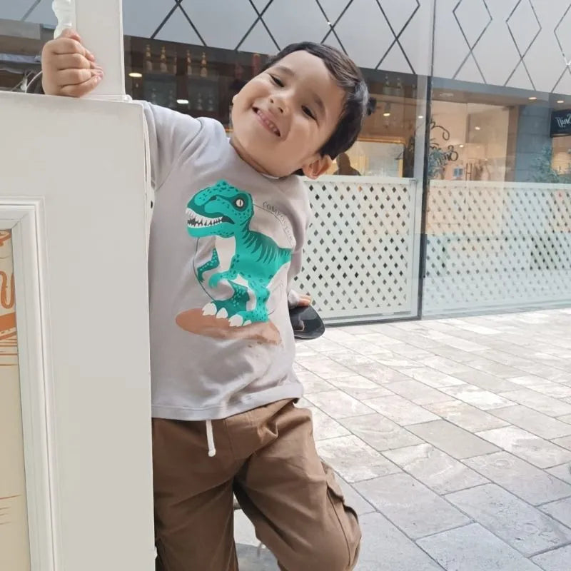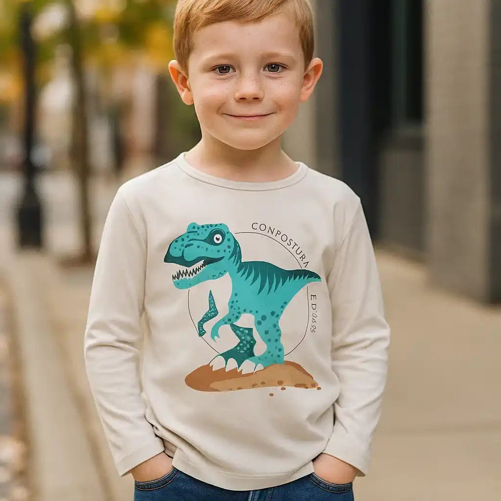 Polo de algodón Pima para pequeños dinosaurios en crecimiento. Colores gris y gris oscuro que lo hacen genial y divertido. Y para darle un toque prehistórico, un estampado de dinosaurio en el pecho que hará que tu pequeño se sienta un verdadero explorador. Hecho con algodón súper fresco y suave, para que se sienta cómodo y feliz. ¡Viste con estilo y un toque de aventura!