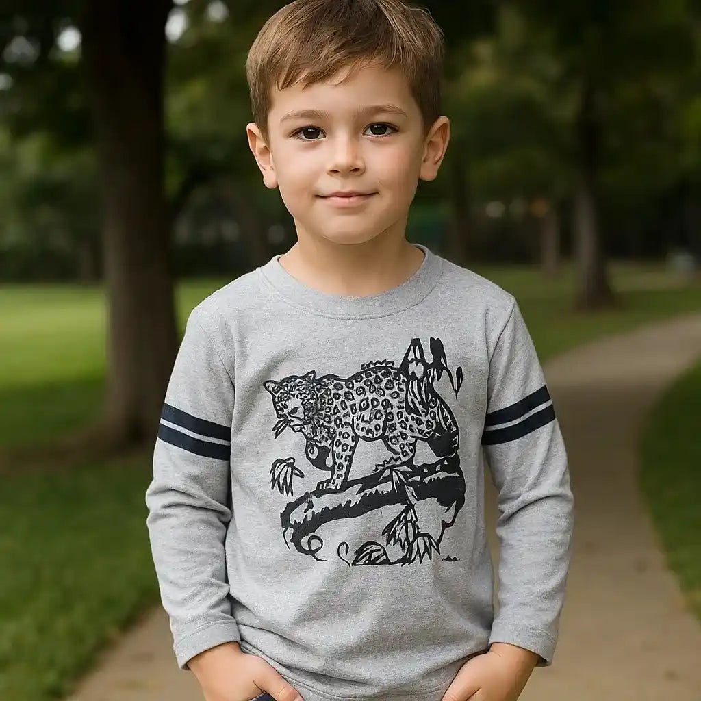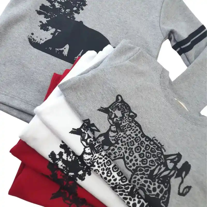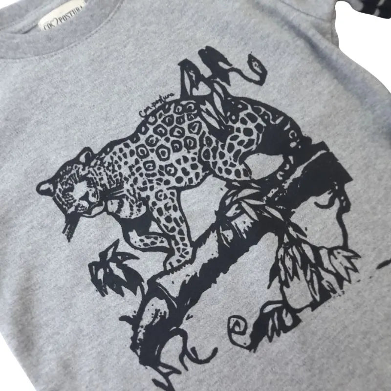 Polo de manga larga de algodón, inspirado en la riqueza de la Amazonía peruana. Franjas en las mangas que evocan la exuberancia de la selva, y en el pecho, el majestuoso otorongo, símbolo de la fuerza y la belleza de nuestra Amazonía. Un diseño que combina estilo y conexión con la naturaleza. ¡Viste con orgullo y representa la esencia de la Amazonía!