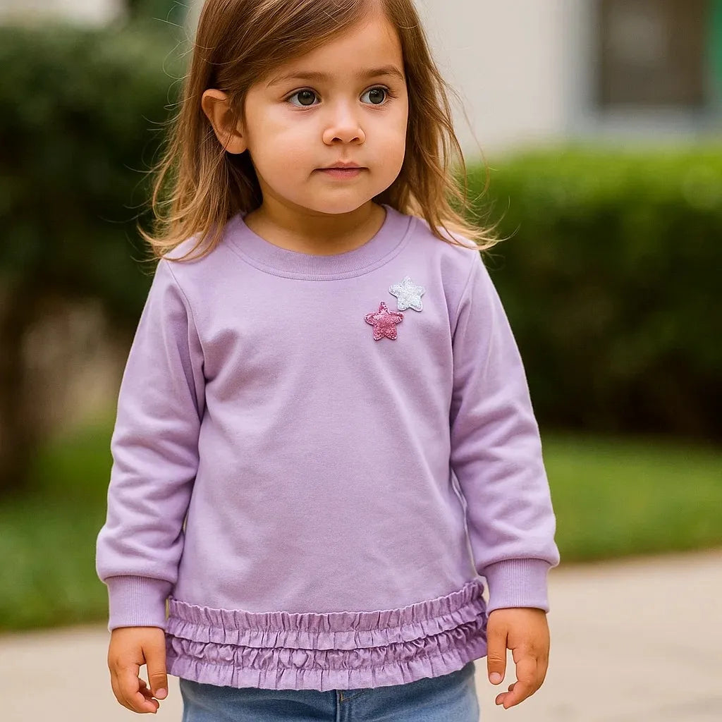 Nuestro polo manga larga en color lila, rojo y melange es suave y cómodo. Con blondas en basta y mangas, agrega un toque de estilo y personalidad a su outfit diario.