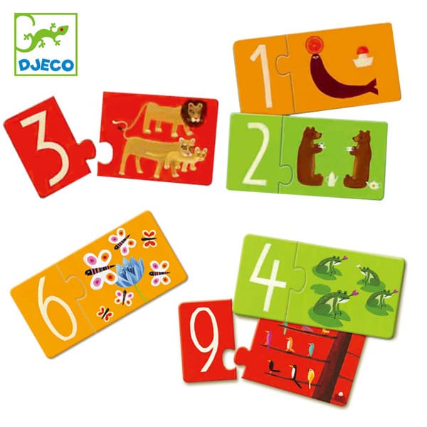 Rompecabezas didáctico para una experiencia con los números y reconocer las cantidades de estos relacionándolos con respectivas imágenes.