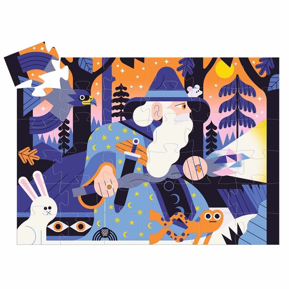 Rompecabezas rectangular de 36 piezas grandes faciles de manejar por las pequeñas manos de los niños, descubrirán una espectacular escena con un mago.