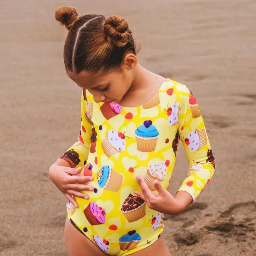 Traje de baño de manga larga para niña, diseñado para brindar comodidad y mayor protección frente al sol. Su confección ligera y elástica permite libertad de movimiento en la playa o la piscina, ideal para acompañar cada momento de diversión.