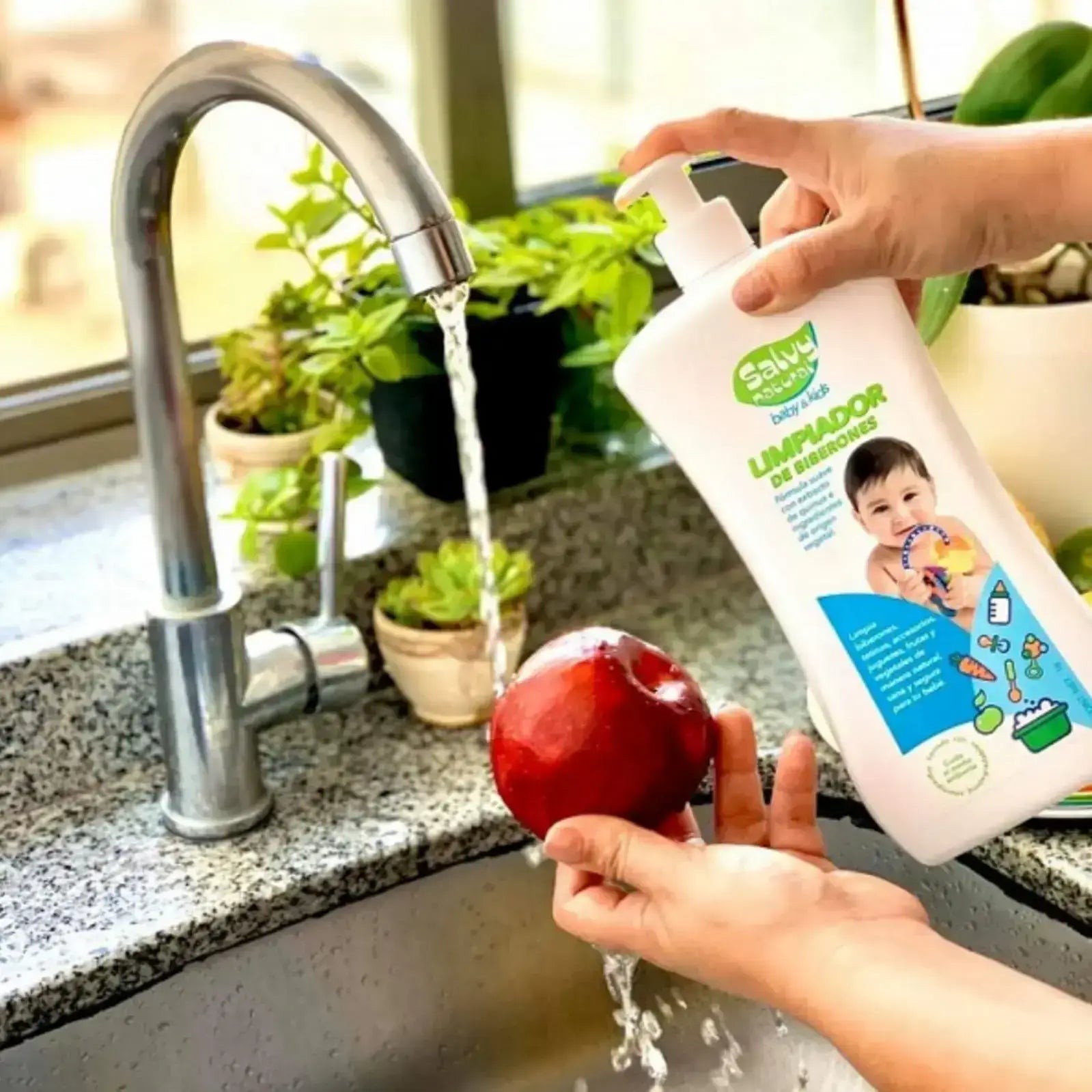 Limpia biberones, tetinas, accesorios, juguetes, frutas y vegetales de manera natural, sana y segura para tu bebé. Libre de alergias