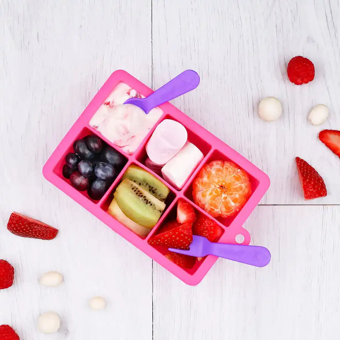 Para comer más cómodamente sin ensuciarse las manitas. Ideales para alimentos como fruta o yogur.