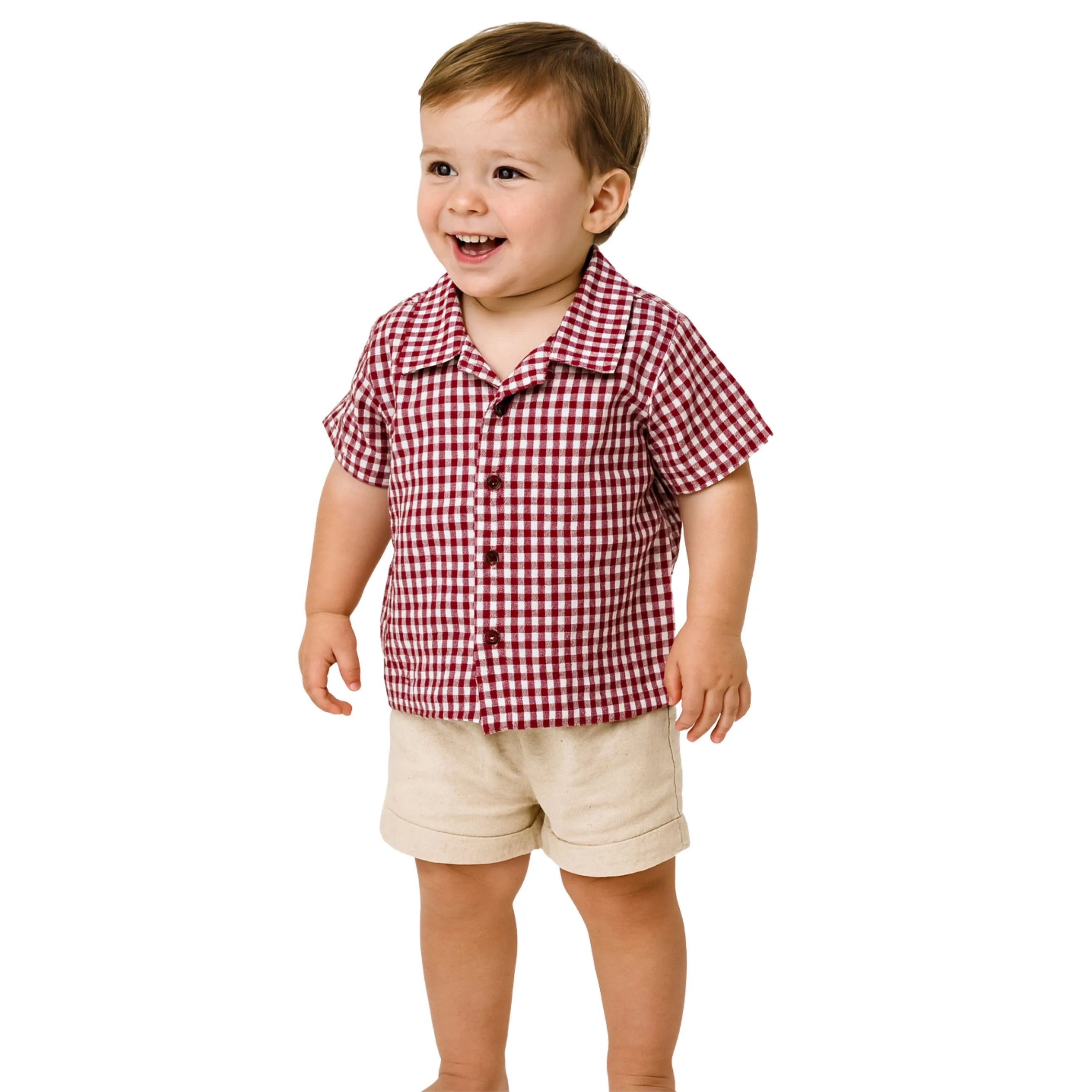 Un outfit perfecto para las celebraciones más especiales. Este conjunto para niño combina una encantadora camisa a cuadros verde en lino suave con un short color nude de diseño limpio y elegante, ideal para lograr un look fresco, cómodo y con estilo en las noches navideñas.