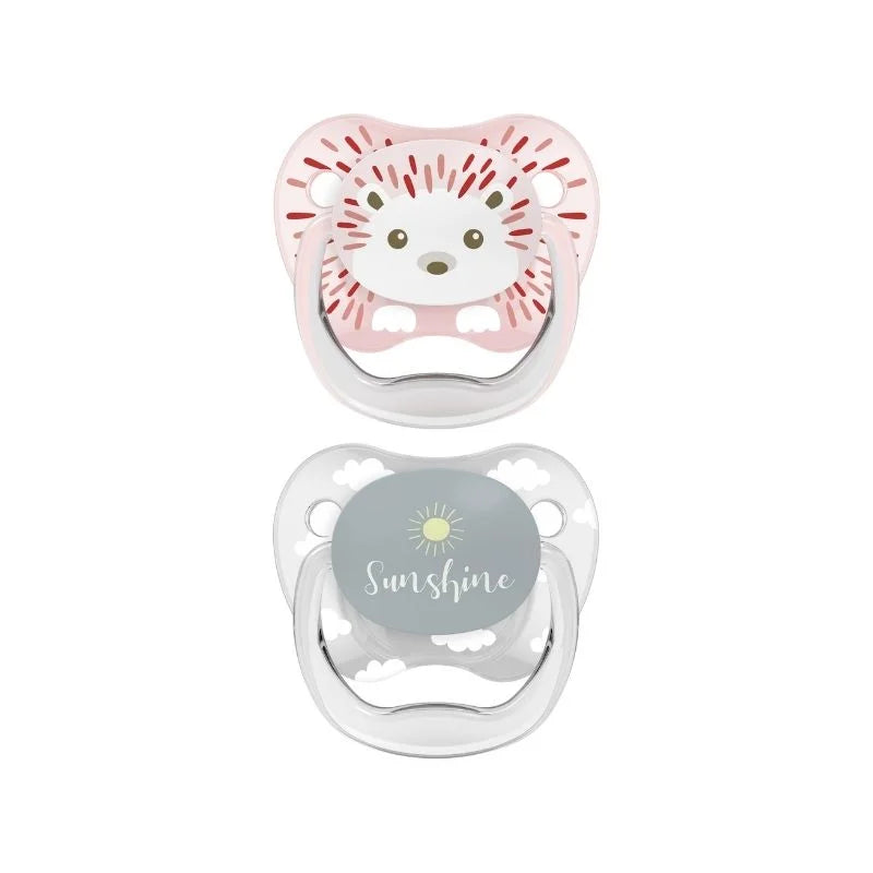 El escudo contorneado se curva alejándose de la cara del bebé para reducir el riesgo de sarpullido del chupete en las mejillas y narices pequeñas.