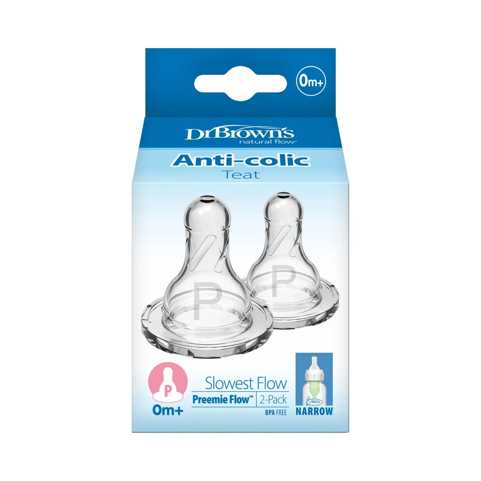 Las tetinas de boca estrecha para bebés prematuros de Dr. Brown’s, son extra suaves y están fabricadas de 100% silicona de la más alta calidad. Presentan un sistema único y patentado de ventilación interna que elimina el vacío y las burbujas de aire, reduciendo los síntomas de cólico, vómitos, eructos, reflujo y gases en los niños. Estas tetinas son para biberones Dr. Brown’s de boca estrecha. Libres de BPA.