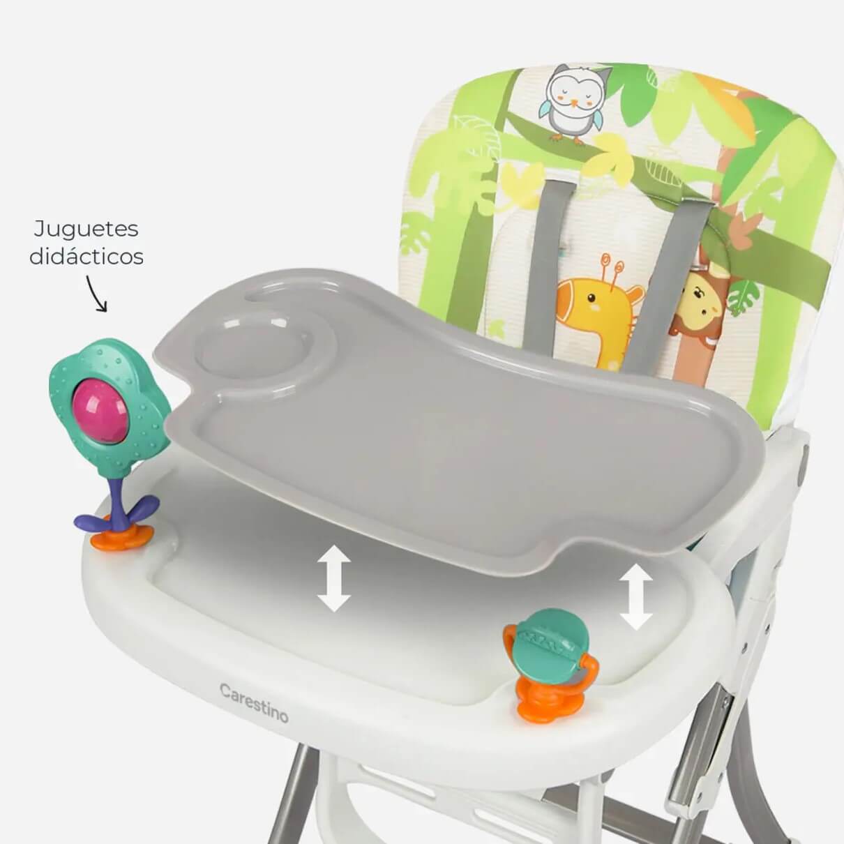 La silla de comer RÍO transforma cada comida en una experiencia única para tu bebé. Con juguetes de estimulación extraíbles integrados en su bandeja, este innovador diseño mantiene a tu bebé entretenido mientras se alimenta. Ideal para fomentar el aprendizaje temprano y el desarrollo sensorial.Su reposapiés regulable y capacidad de soportar hasta 18 kg brindan un ajuste perfecto y seguridad duradera a medida que tu bebé crece. ESPECIFICACIONES: Peso: 6,8 kg - Medida plegado: 15,5 cm x 60 cm x 89 cm - Asiento: 28 cm x 20 cm - Respaldo: 44,5 cm x 36 cm - Bandeja: 48 cm x 26,5 cm - Altura piso / bandeja: 74,5 cm.