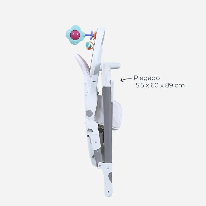 La silla de comer RÍO transforma cada comida en una experiencia única para tu bebé. Con juguetes de estimulación extraíbles integrados en su bandeja, este innovador diseño mantiene a tu bebé entretenido mientras se alimenta. Ideal para fomentar el aprendizaje temprano y el desarrollo sensorial.Su reposapiés regulable y capacidad de soportar hasta 18 kg brindan un ajuste perfecto y seguridad duradera a medida que tu bebé crece. ESPECIFICACIONES: Peso: 6,8 kg - Medida plegado: 15,5 cm x 60 cm x 89 cm - Asiento: 28 cm x 20 cm - Respaldo: 44,5 cm x 36 cm - Bandeja: 48 cm x 26,5 cm - Altura piso / bandeja: 74,5 cm.