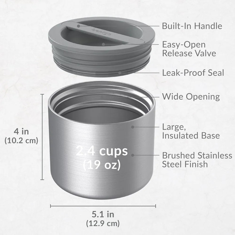 Lleva tus comidas a todas partes con el recipiente para alimentos con aislamiento de acero inoxidable Bentgo, diseñado para mantener la comida caliente o fría durante horas.