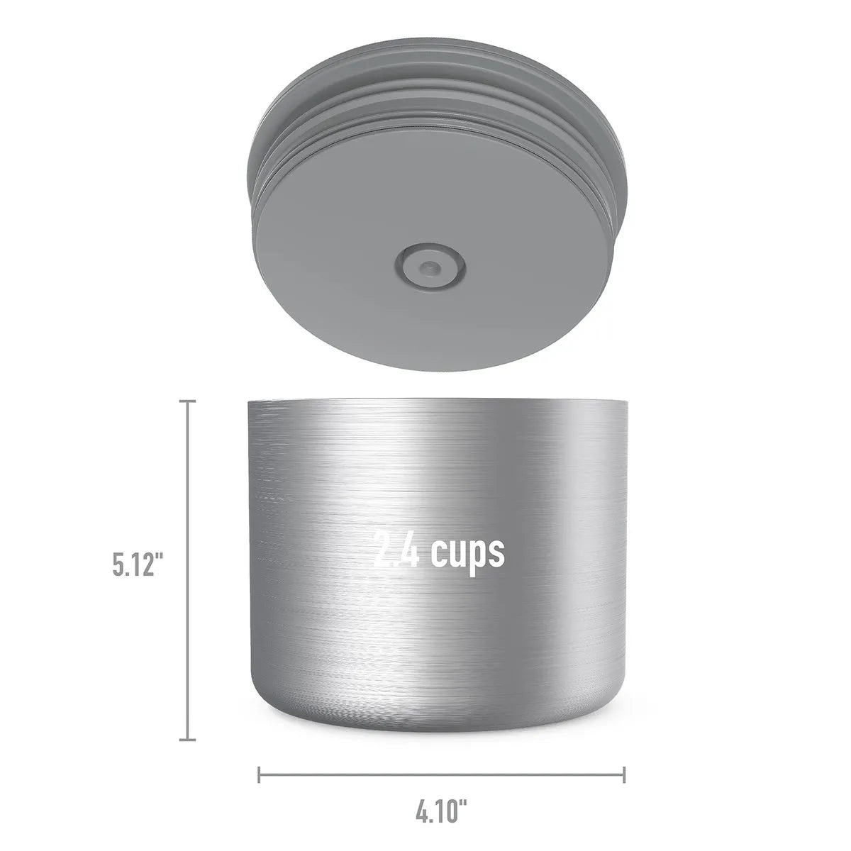 La tapa hermética a prueba de fugas con una válvula de liberación de presión garantiza una fácil extracción al empacar alimentos calientes, mientras que la generosa capacidad de 2,4 tazas es perfecta para una comida completa.