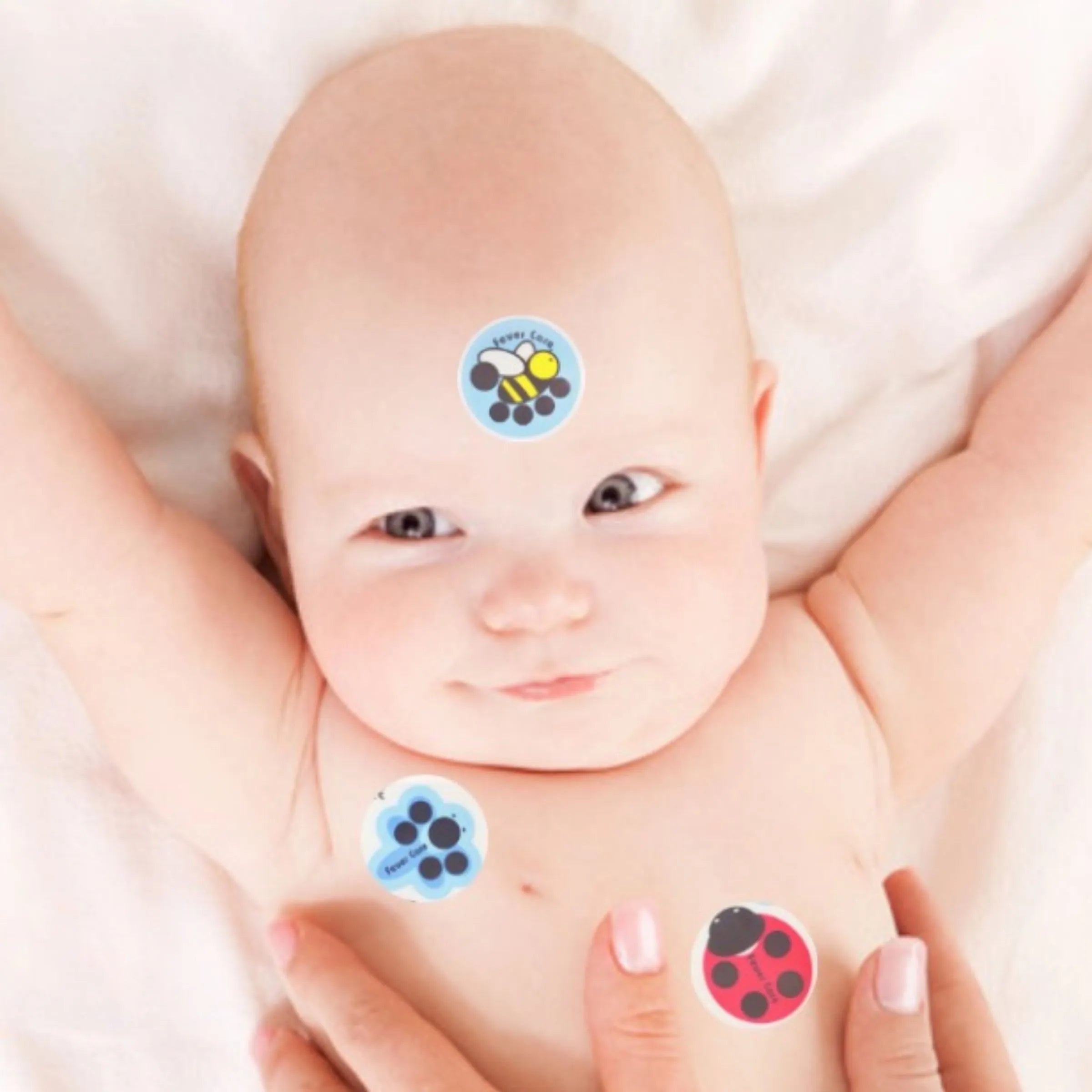 Remueve la calcomanía y coloque en el pecho o la frente. Espere 30 segundos. Si aparece la letra "N" la temperatura es normal, si otro número aparece además de la letra "N" la temperatura corresponde al número mayor. Se puede mantener por 48 horas en el cuerpo y es antialérgico.