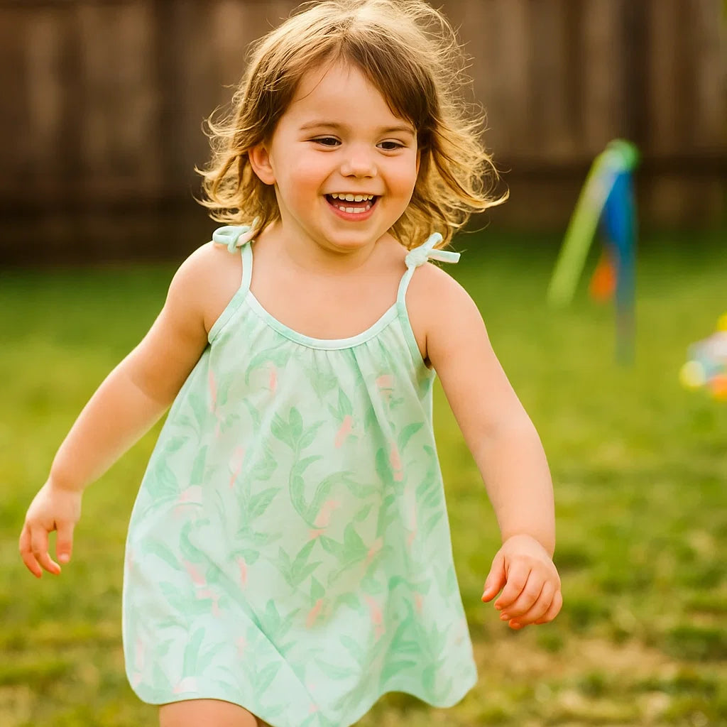 Frescura y alegría en cada paso, como un día perfecto junto al mar o piscina. Su tela suave y transpirable la mantendrá fresca y cómoda todo el día.
